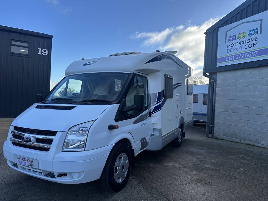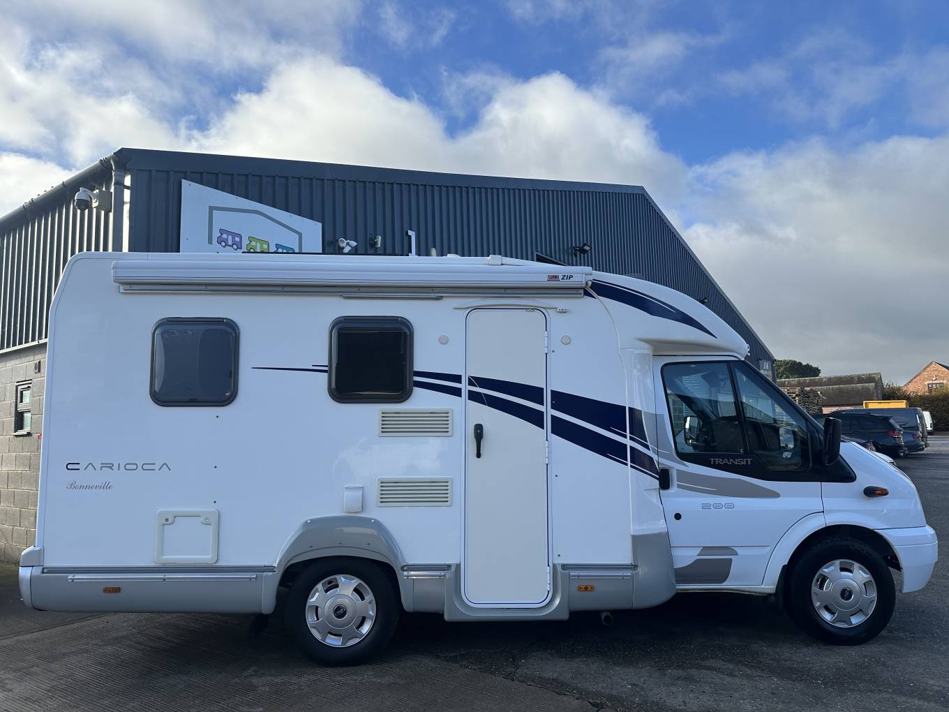 2012 CI CARIOCA 200 LOW PROFILE MOTORHOME FOR SALE. Presented in good condition. Based on a Ford Transit chassis with a 2.2 engine. MOT March 2025. Weight 3500kg, length 6.25 metres and width 2.3 metres. This low profile motorhome will sleep 4people and has 4 travelling seat belts. Cab area has cruise control, power assisted steering, central locking, silver screens, radio, 2 swivelling captains chairs, electric windows and reverse camera. Dinning area extends and converts into a single bed. Mid ship kitchen is equipped with a stainless steel sink and mixer taps, 3 burner gas hob, 3 way fridge freezer and grill. End bathroom has a separate shower cubicle, wash hand basin and Thetford toilet. At the rear your comfortable french bed has a storage area underneath that can be accessed from outside.