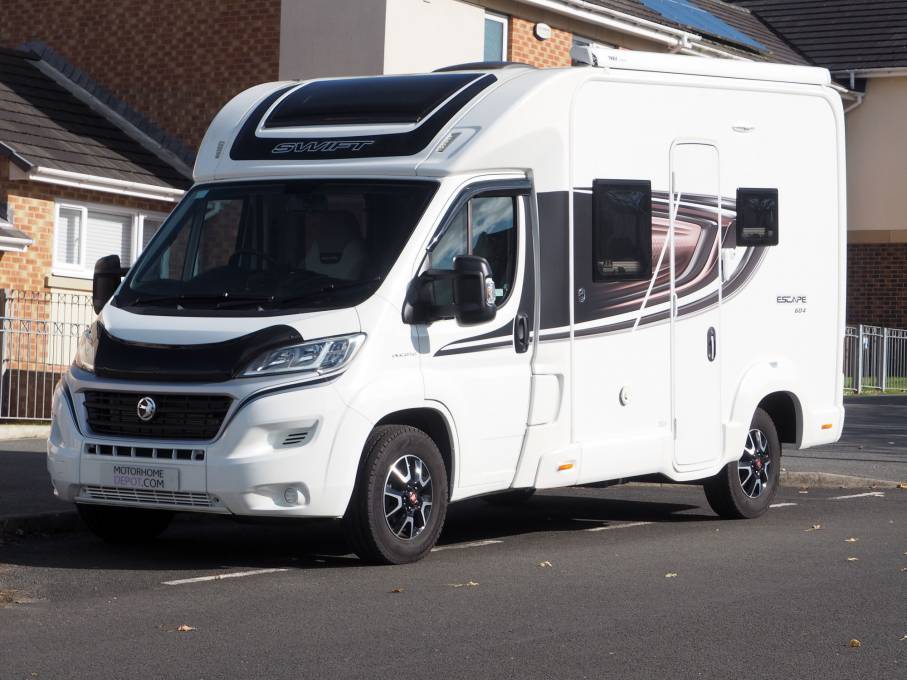Very low mileage compact 4 berth motorhome from Swift, with the latest generation automatic transmission. The Escape 604 has an innovative layout, modern styling and a high specification as standard, including drop down double bed. At just 6 metres long and plated at 3500KG, its easy to drive and park on a standard car licence. Full facilities are on board, including fresh and waste water tanks, dual fuel heating and hot water, full washroom with separate shower cubicle, full kitchen, awning.