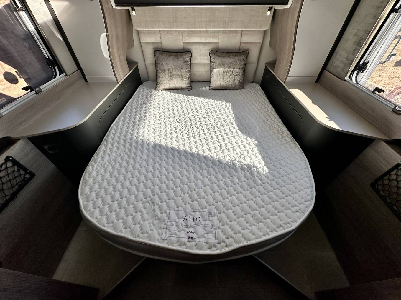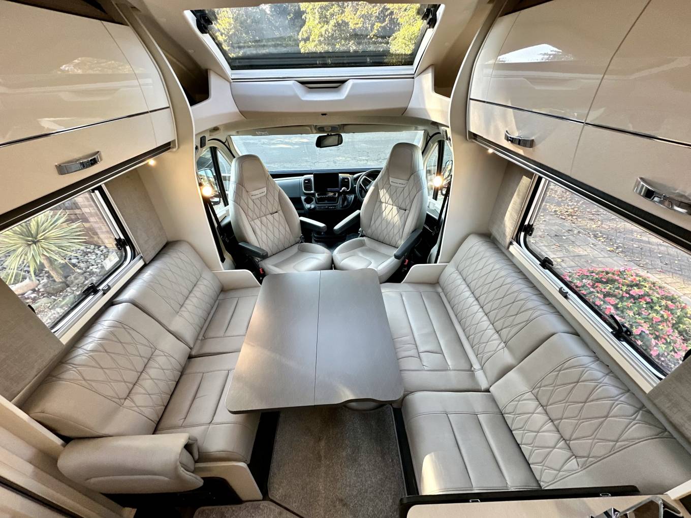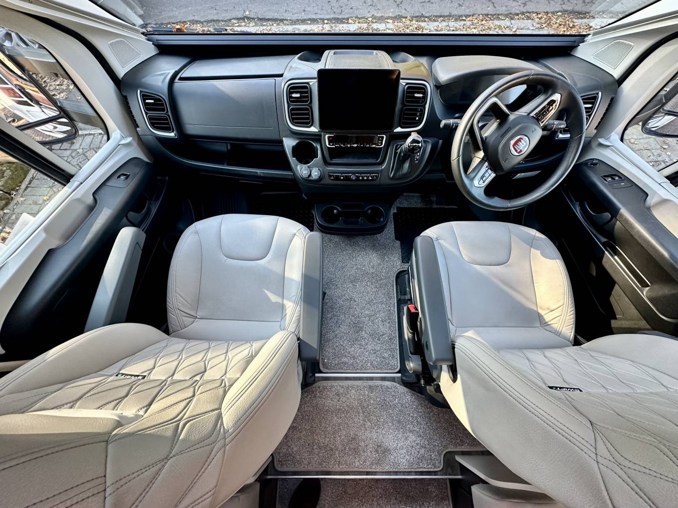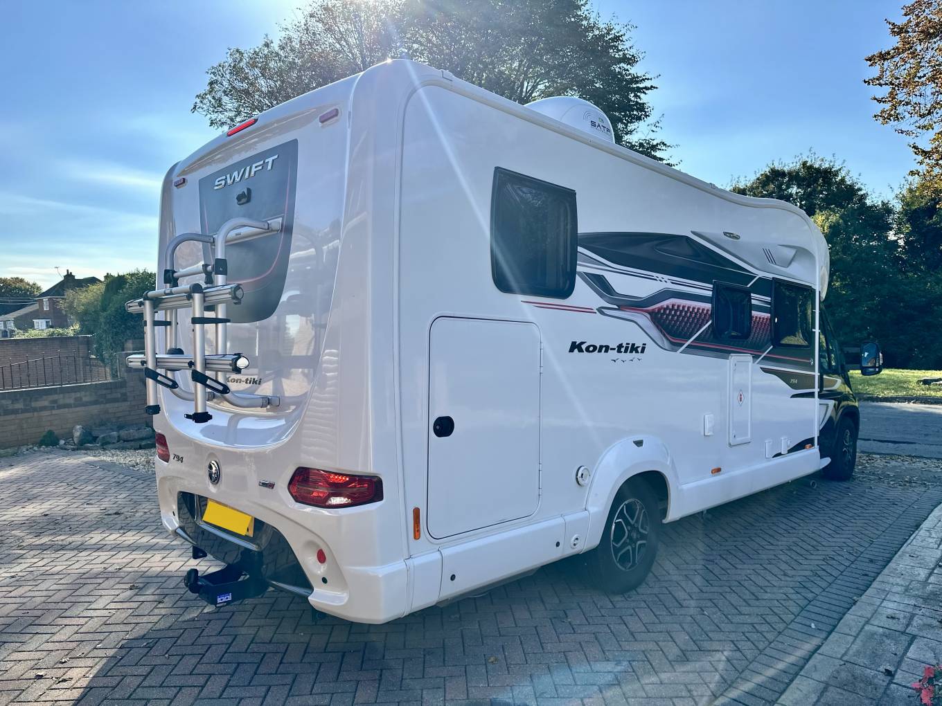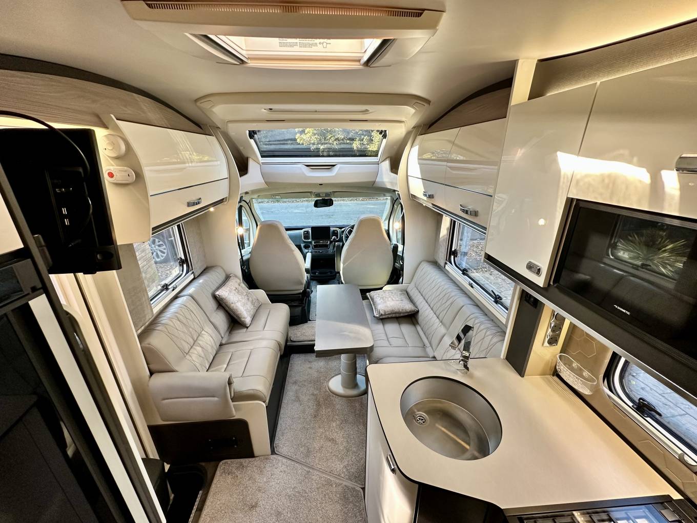 Additional extras: wind out canopy, bbq point, external 240v power point, bike rack for 2, tow bar, reversing sensors, external shower point, 2 x tv’s, 2 x solar panels, Alko self levelling system, Wi-Fi, Fiat media pack, tow bar, cab blinds and tracker