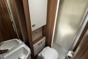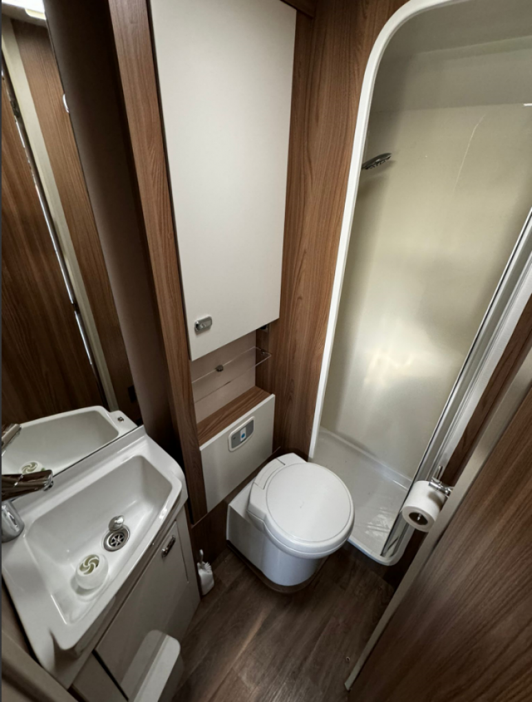 The large washroom adds a touch of home comfort, featuring a separate shower, toilet, and sink. The Alde programmable heating system ensures you stay warm in any season, meeting Grade 3 insulation standards for year-round use.