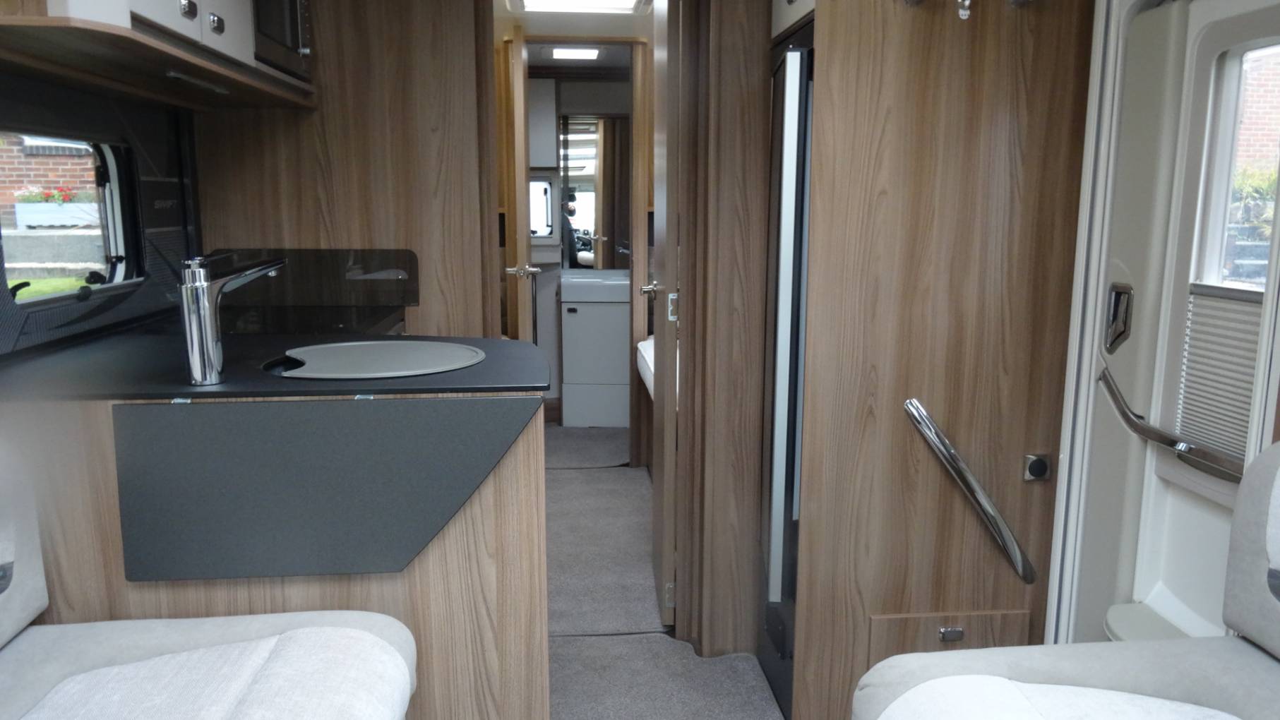 and across the rear is a superb washroom with cassette toilet, sink and separate