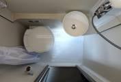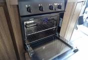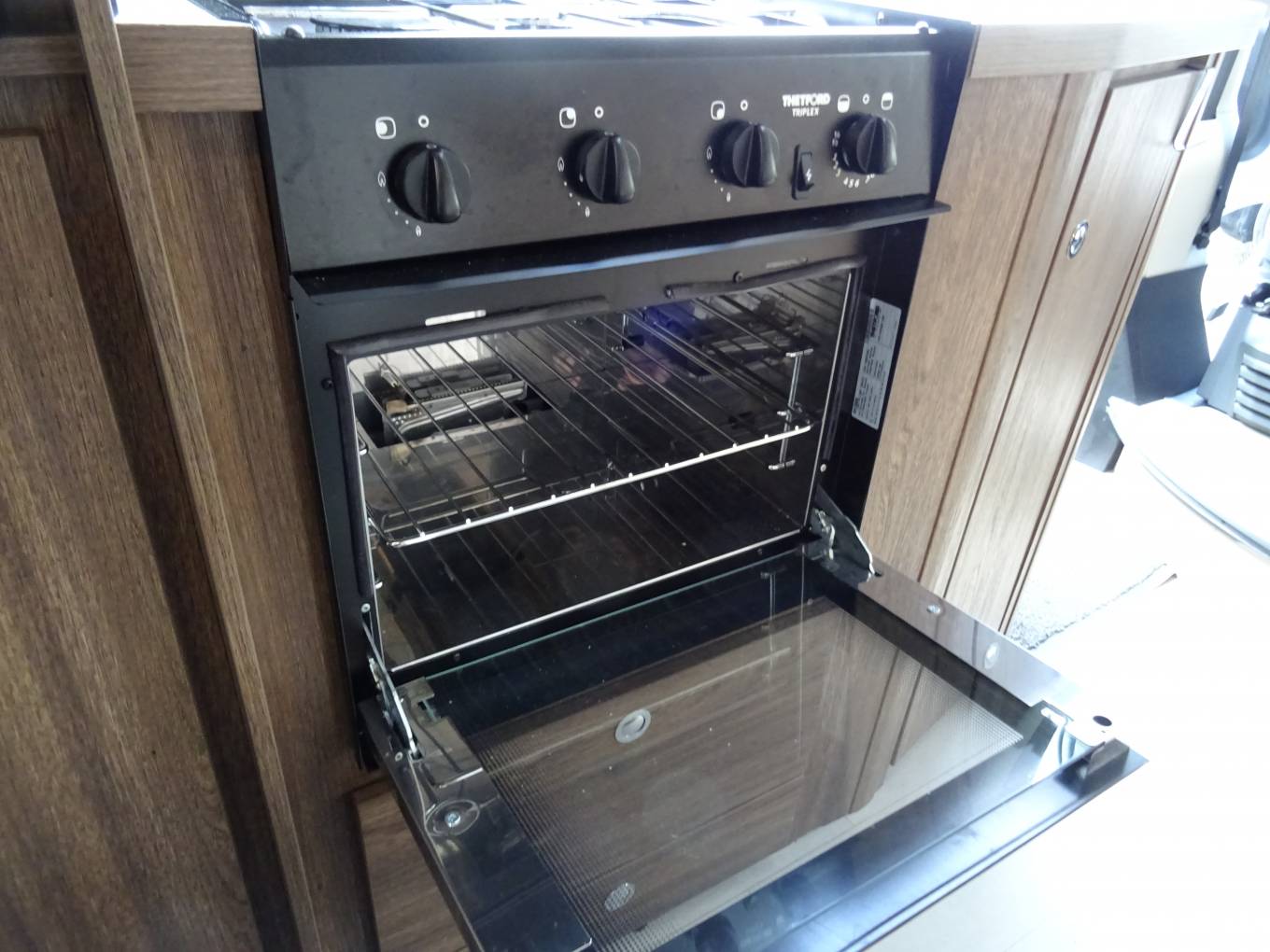 At the rear area is a large settee which pulls out to make a good-sized French style bed, with plenty of storage below, whilst still allowing room to open the cupboards and drawers that run along the nearside wall.