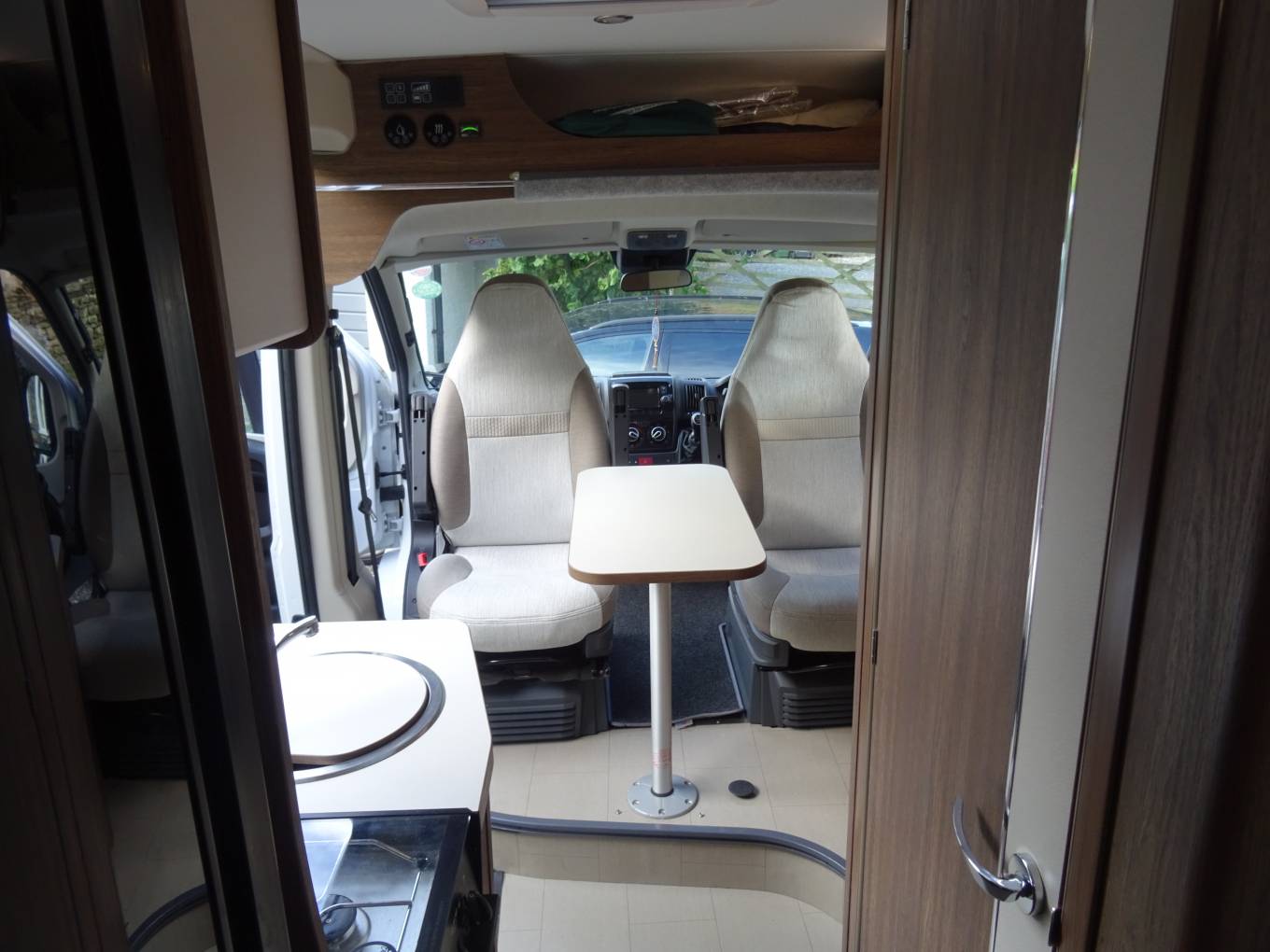 Outside there is an Fiamma wind out awning, Solar panel, Reversing camera, Tow Bar, External BBQ point ,Fiat upgrade alloy wheels, electric entry step, Gas-it re-fillable onboard gas tank, access to toilet cassette, water inlet and a mains hook up point.