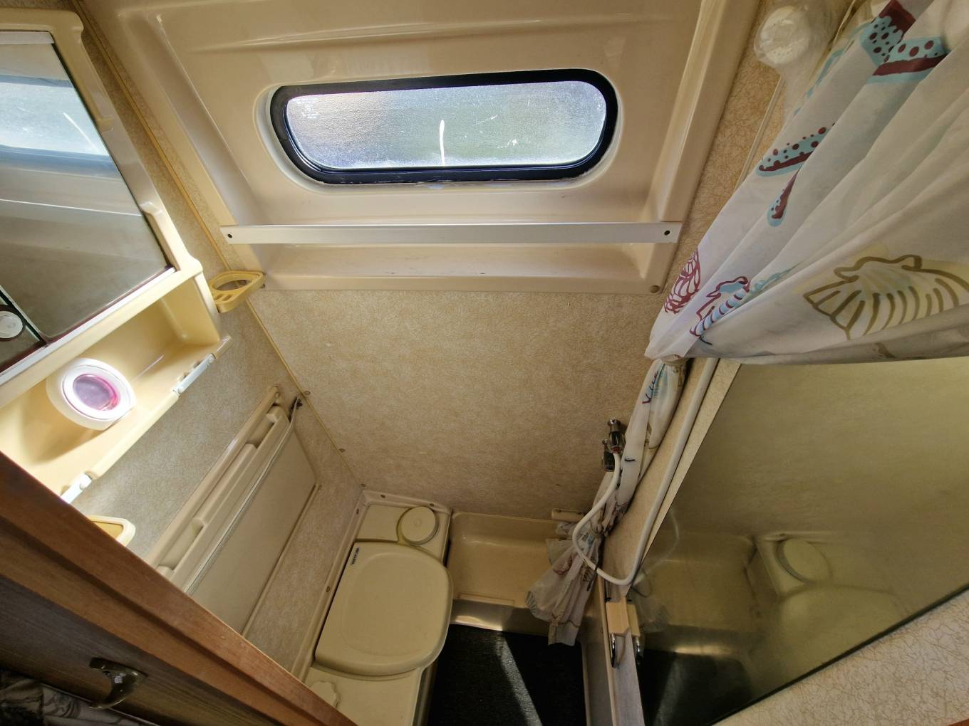 - Washroom with shower, folding sink and cassette toilet