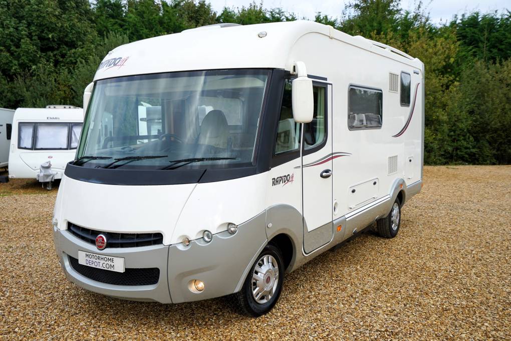 2012 Rapido 9048DF 4 Berth Luxury Compact A Class Motorhome with Drop down over cab bed & Spacious living area. 4 Seat Belts. This DF series motorhome is based on the Fiat AL-KO A-Class Chassis with insulating double floor giving additional Storage, plus an extra-wide rear track and independent wheel suspension. All built into a Compact 6.49 meters, with a very generous living area