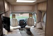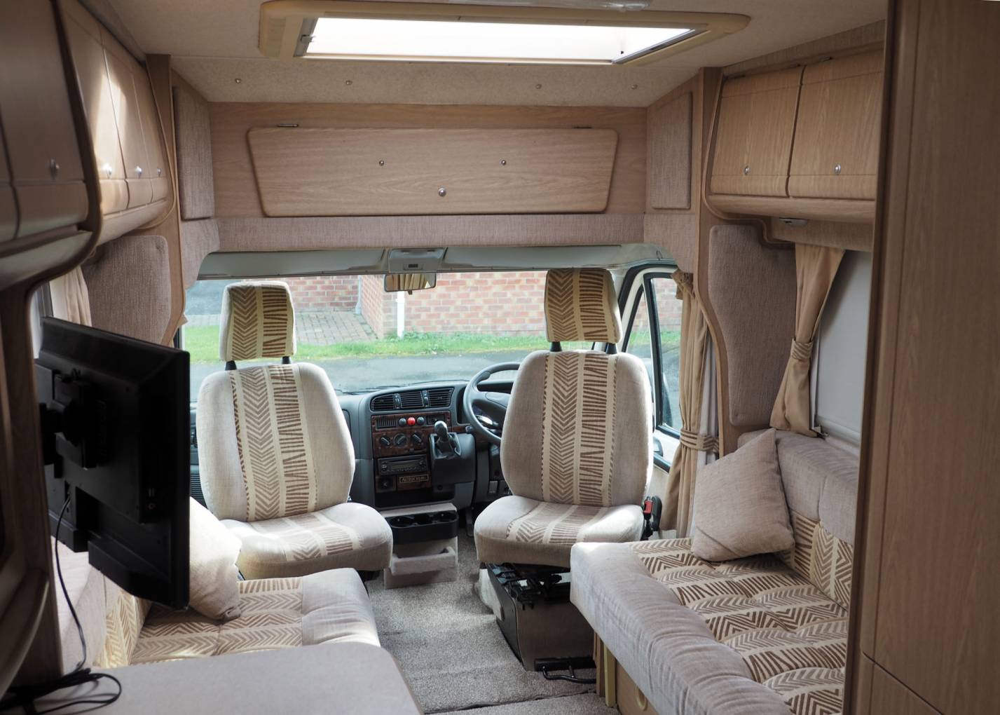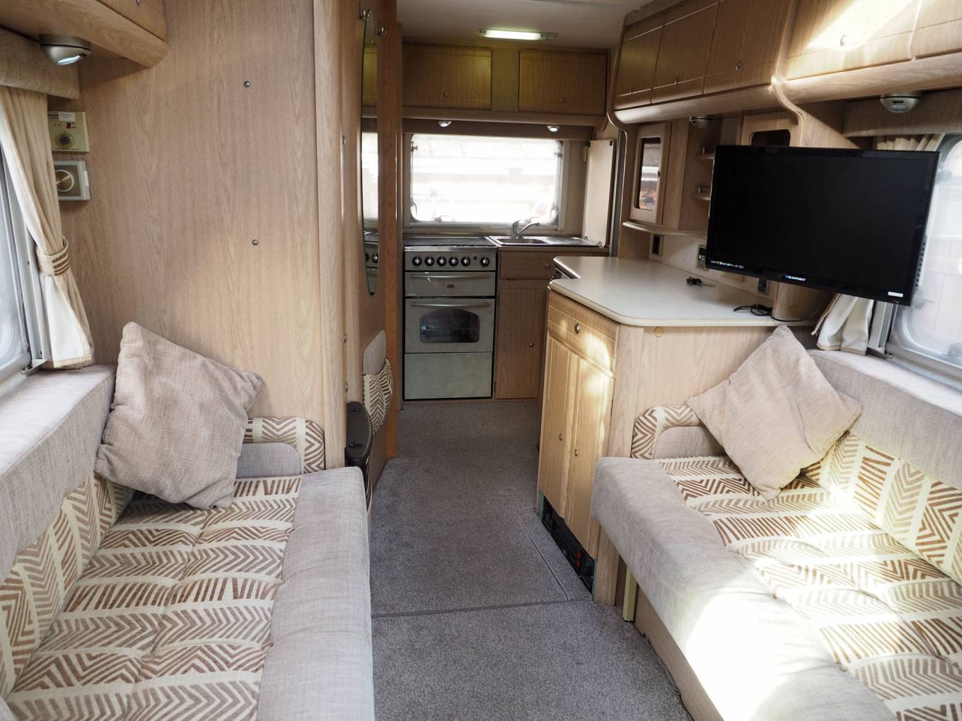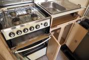 Offering full facilities including fresh and waste water tanks, dual fuel heating and hot water, the Starquest has an inviting dinette with twin bench settees and swivel cab seats, giving plenty of lounging space. There is a free standing table for mealtimes and this area quickly makes up into a double transverse bed or two singles. Midships, there is a substantial dresser unit with various storage opotions and handy worktop space, opposite a large wardrobe, also accessible from within the washroom, which offers a vanity sink, toilet and solid lined shower cubicle.