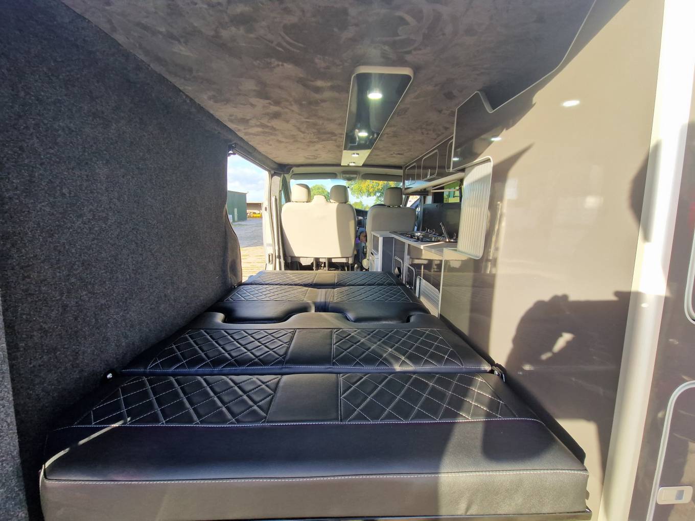 be also used as a leisure vehicle. The bed in the van is one that is made with