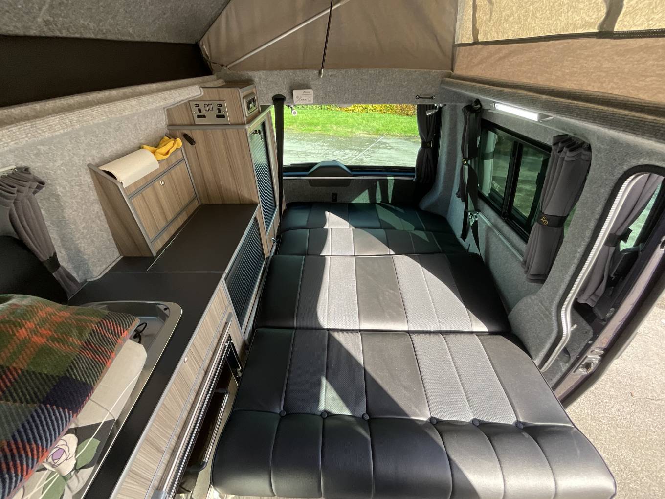 Motorhome Depot Stoke on Trent are delighted to bring to the marker a fantastic 2017 Volkswagen T6 Highline Leisure Drive Crusader camper conversion for sale. Based on the Transporter chassis, this 1 owner, 2 berth, 4 belt side pop top campervan was converted by Leisure Drive in February 2024 and has the 2 litre Diesel engine with 5 speed manual gearbox. As you enter this quality conversion you are greeted by the kitchen that has a 2 burner gas hob, grill, oven, handwash basin and the 12v fridge. You also have the removable table which will handily store away if required. The rock n roll bed is a normal sized double and will provide additional 2 3 point travelling seat belts. The passengers seat will also swivel to give additional seating options if required. Please call our friendly sales team for any further assistance or to arrange a viewing.