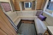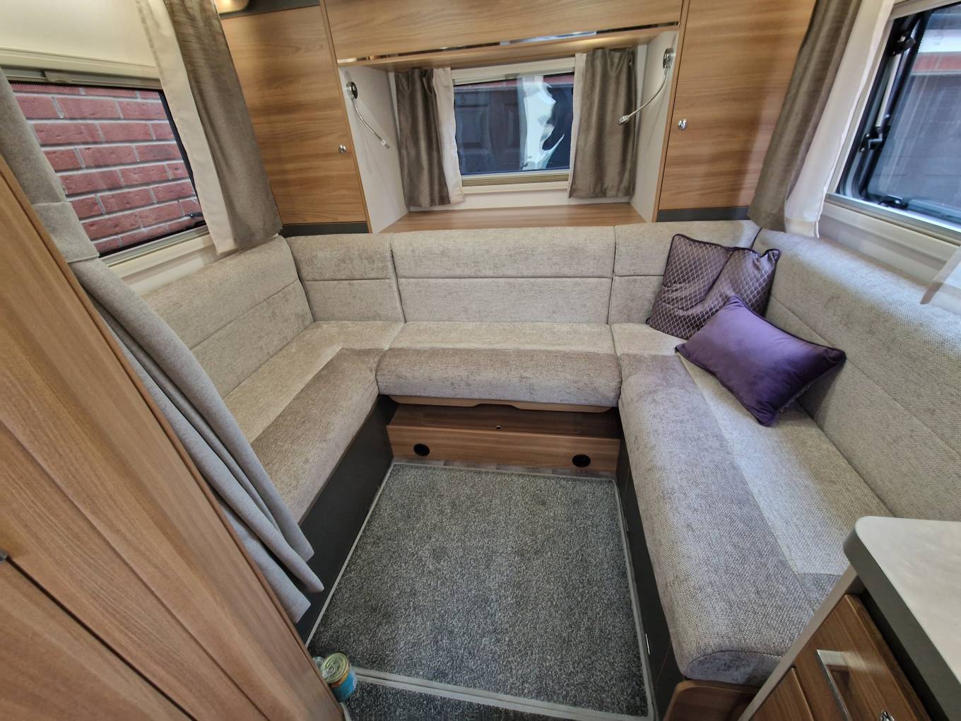 At the rear is a U-shaped lounge which also can be made up into a large double bed and has a wardrobe in each rear corner, one of which can be accessed from the outside. There is an Avtec Smart TV tucked away which can be viewed in this area.