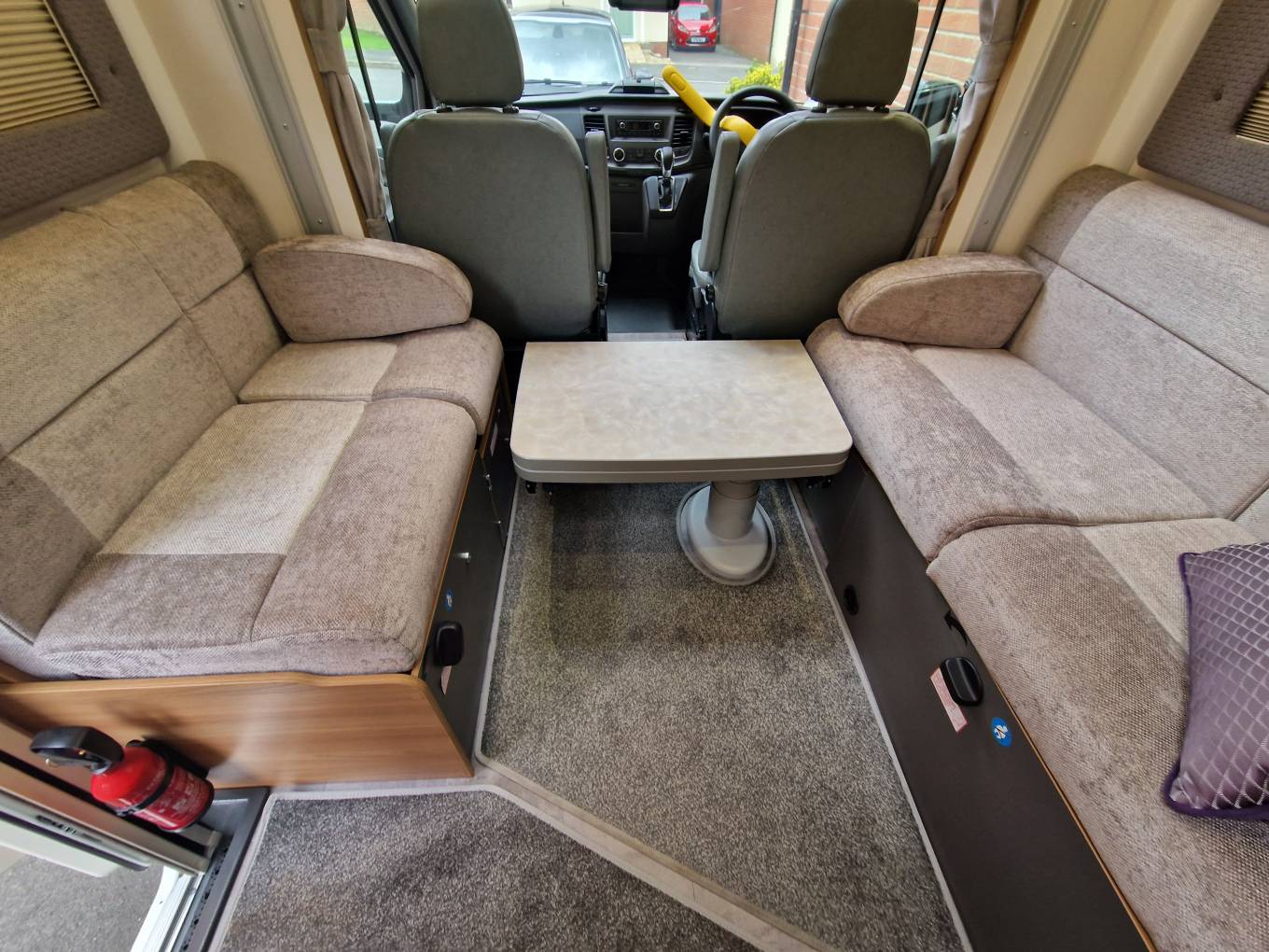 Outside the van there is an upgraded wind-out awning, digital aerial, a 100w solar panel, a refillable Gaslow system with 2 large bottles,reversing camera and wing mirror protectors. The current owner also fitted upgraded alloy wheels at a cost of £1300.There is access from either side to a useful large garage running across the entire width of the motorhome at the rear.