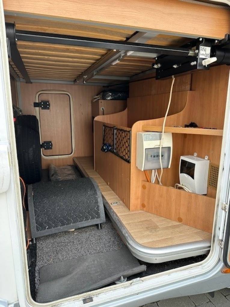 At the rear is the Transverse Bed with Huge Garage below. The height of the bed is adjustable. When the bed is at the lowest point it is at waist height enabling easy access to the bed.