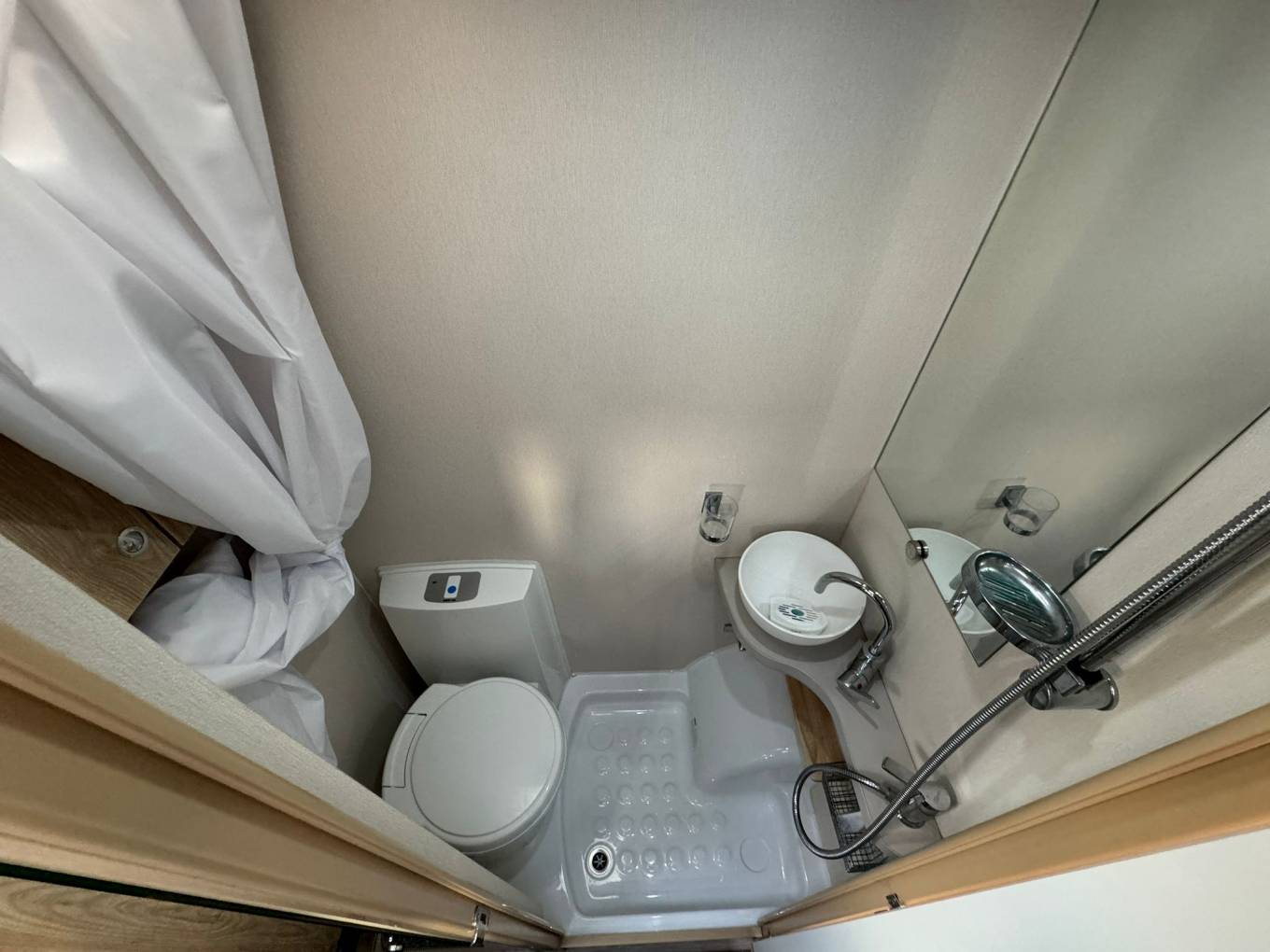 This setup gives a nice balance between a compact footprint and a comfortable living space, making it an excellent choice for both short and extended trips. Please contact a member of our team for more pictures and information.