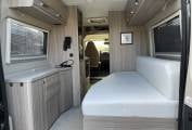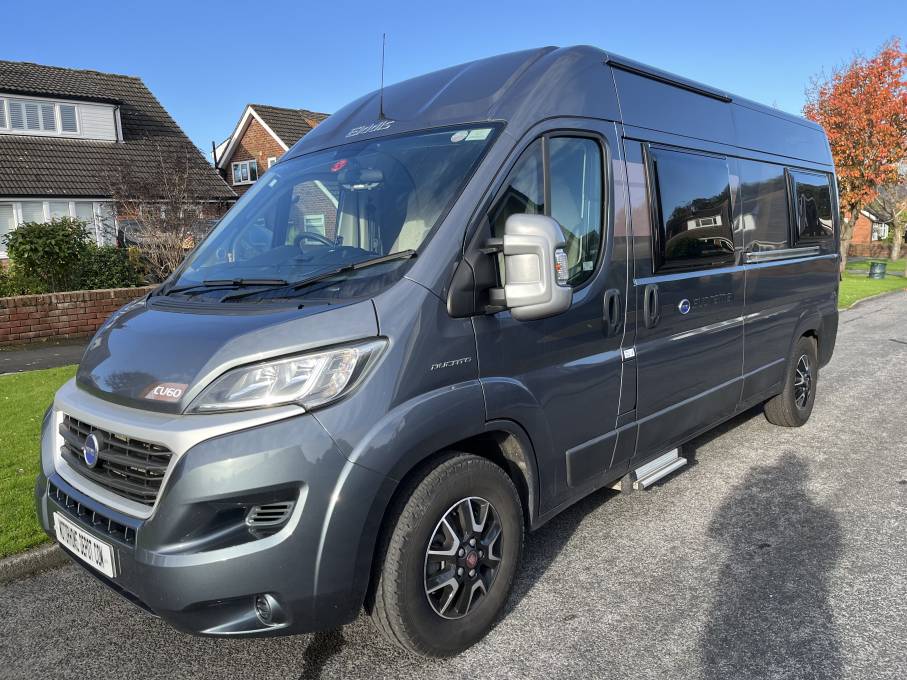 Elddis CV60 Supreme 2 Berth Campervan with Fixed Rear Bed. This is a well equipped, beautifully finished van in excellent condition with one owner from new and just 8,222 miles on the clock. At the rear there is a fixed single bed which can be used as a settee and pulls out into a double bed. In the centre is the bathroom and the kitchen with hob, grill and oven. At the front there are 2 captains seats and a pedestal table. It comes with Cab Air Con, Cruise Control, Alarm, Immobiliser, Rear Camera, Under Slung LPG Tank, Blown Air Heating, Electric Step, DAB Radio, Alloy Wheels, 2 sets of keys and is fully serviced with MOT till July 2025. An excellent example available for view by appointment in Fylde, call for more photos, videos and information.