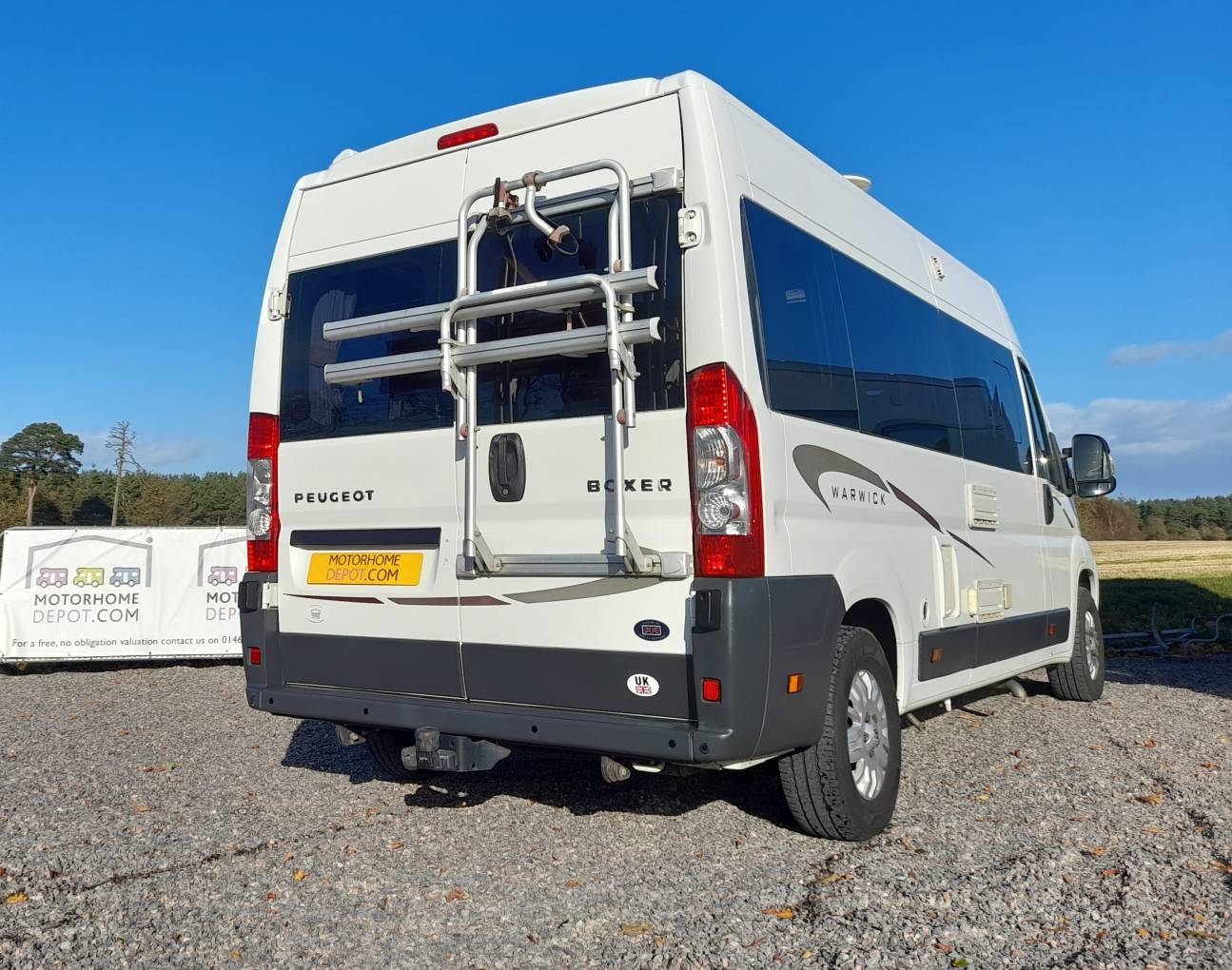 This 2008 Auto-sleepers Warwick is a spacious van conversion with a large kitchen area and end lounge/dinette making it a comfortable van for your camping adventures. It is in good condition with low mileage for age, cab air conditioning. Extras include Eberspacher Diesel Heater, external gas BBQ, underfloor safe, wind out canopy awning, bike Rack, TV, hook up cable and interior cab silver screens