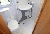 Adjacent to the kitchen is the offside rear bathroom, with a toilet, a hand basin, and a shower that can be screened for convenience.