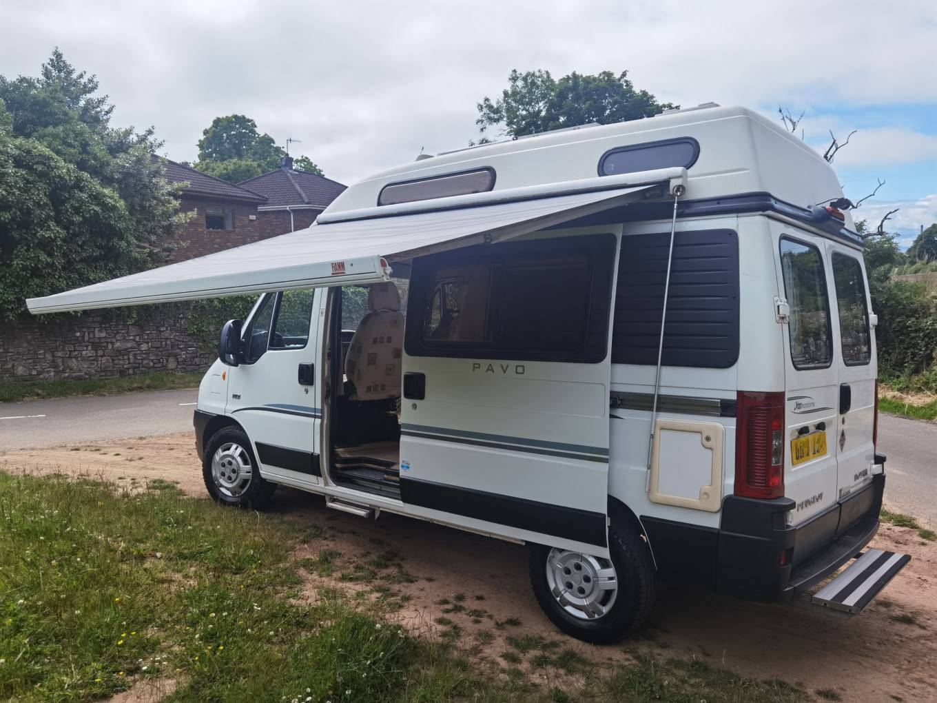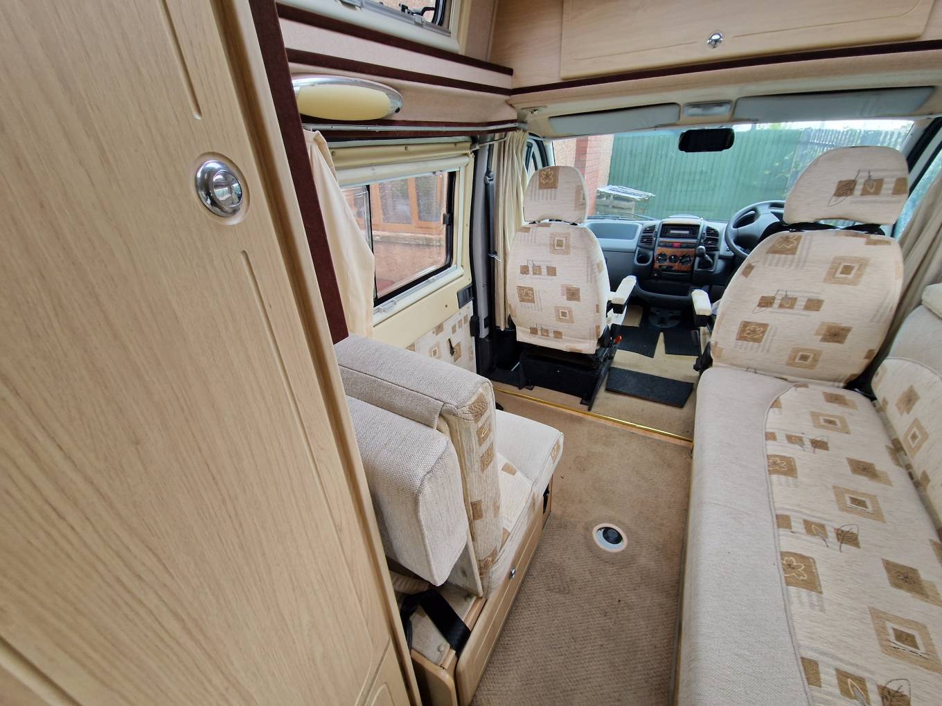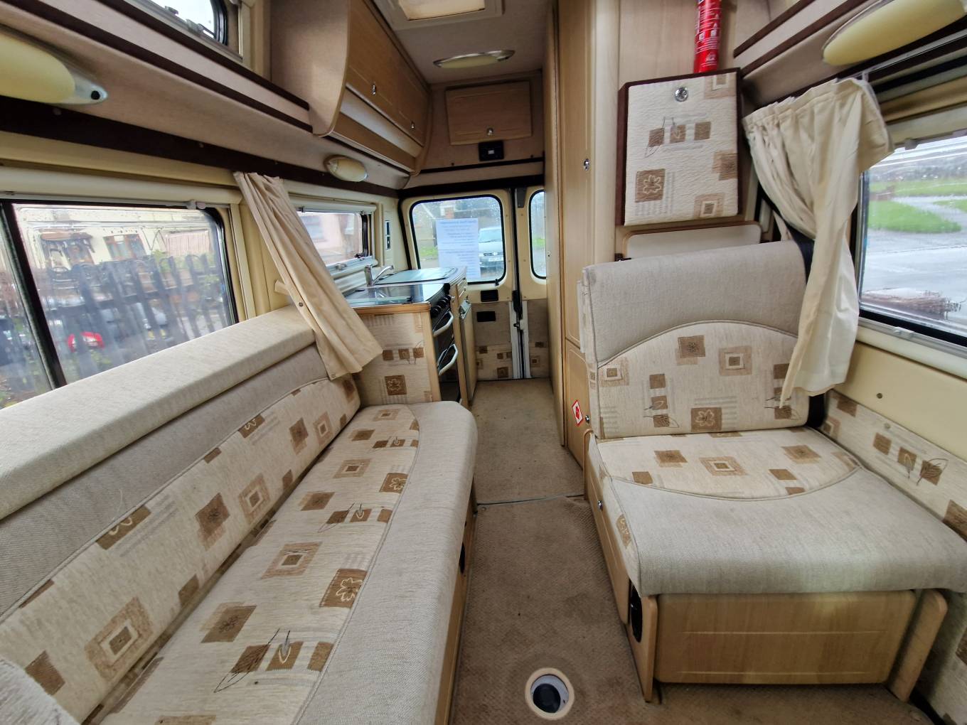 - Outside: Fiamma wind-out sun canopy, Thetford cassette locker, electric step, Status TV aerial, fresh water tank 49 litres / grey water tank 35 litres.