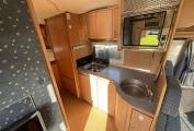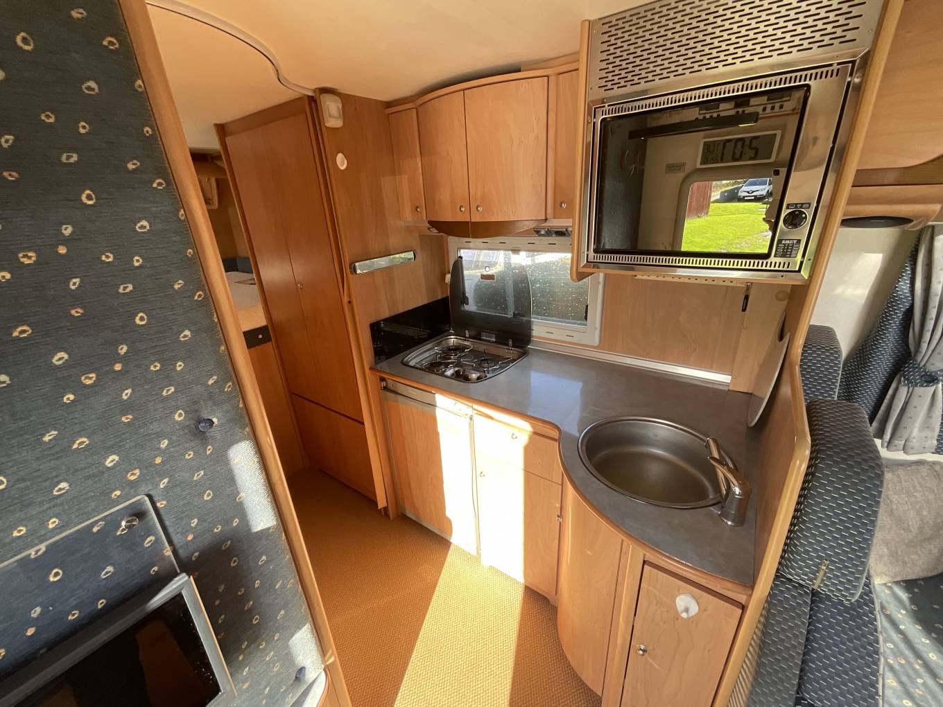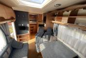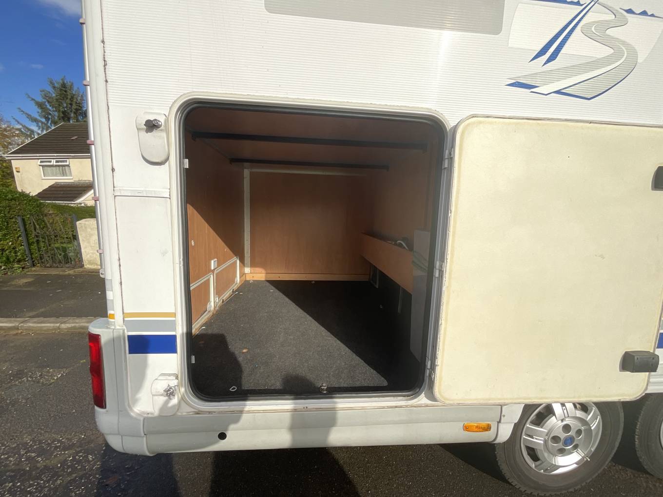 To the rear, externally, you have a large rear garage which is great for either simple storage space or being able to hold larger items such as motorbikes etc. Moving inside and again to the rear you have a good sized fixed bed which caters for 2 of the 6 berths. Just forwards of this you have your washroom featuring a sink with taps, toilet cassette, separate shower cubicle and storage space. In your kitchen area you have a sink with taps, 3 burner gas hob, fridge, oven with grill and yet more great storage space. Moving into your main living area you have a great 4 seater dinette area with 4 additional seatbelts which allows 6 people to travel in total and also a large bench seat to allow for more people to be seated in this area. Finally, you have your extremely spacious over cab bed area to cater for the final of the 6 berths.