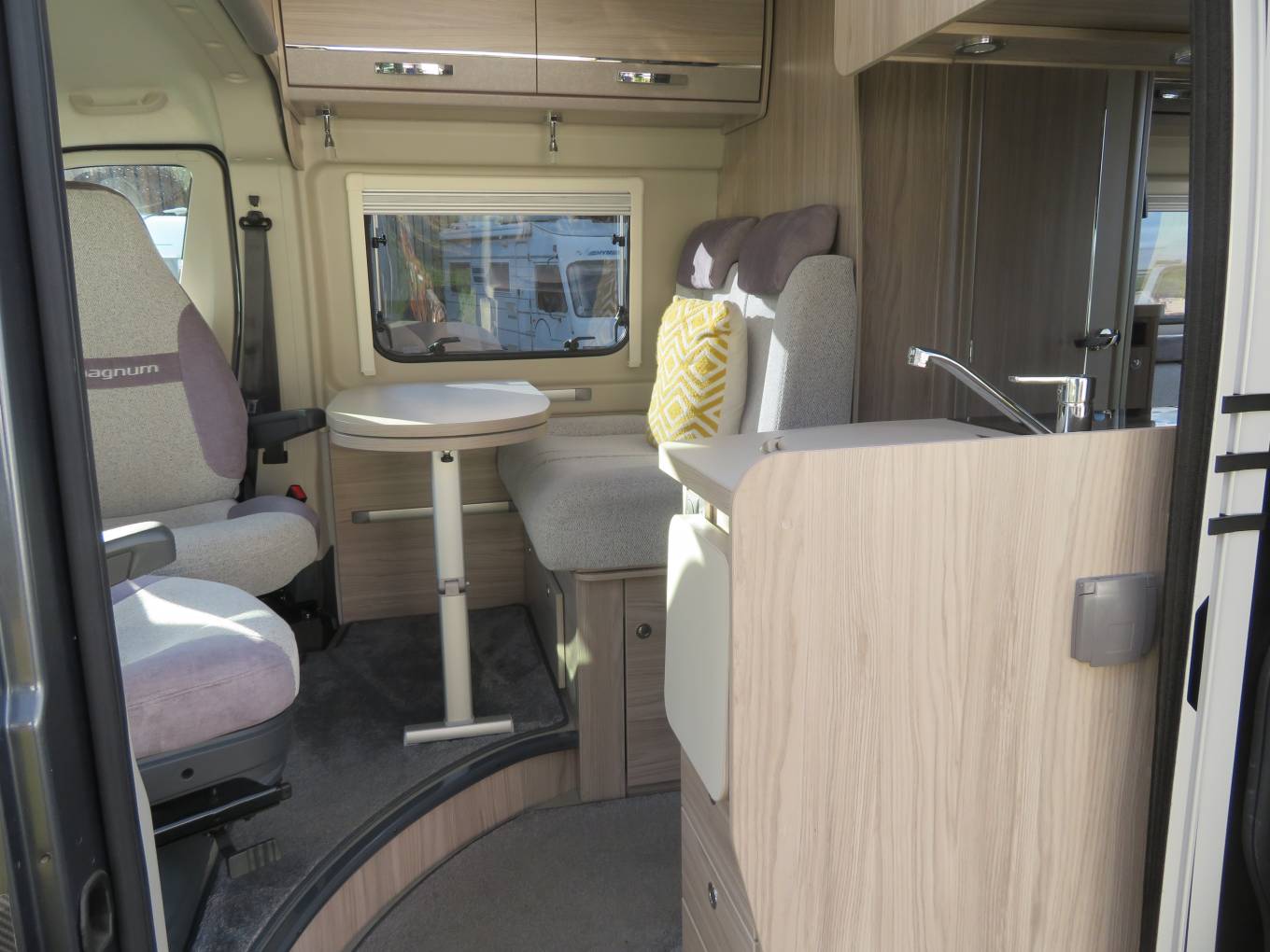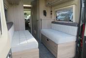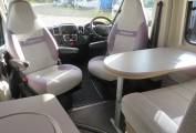 Inside, the GTV40 shares much of its design with the two-berth CV20, but here there’s the possibility of carrying rear passengers, thanks to the inclusion of a half-dinette with two three-point seatbelts, while the wall-mounted table has a swing-out extension leaf.