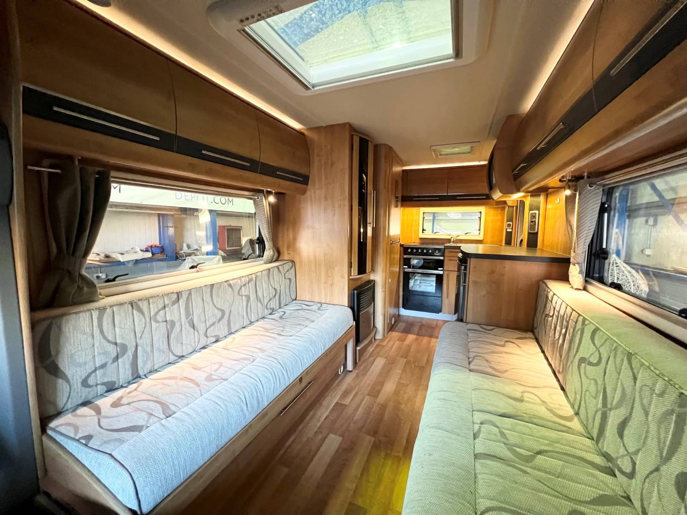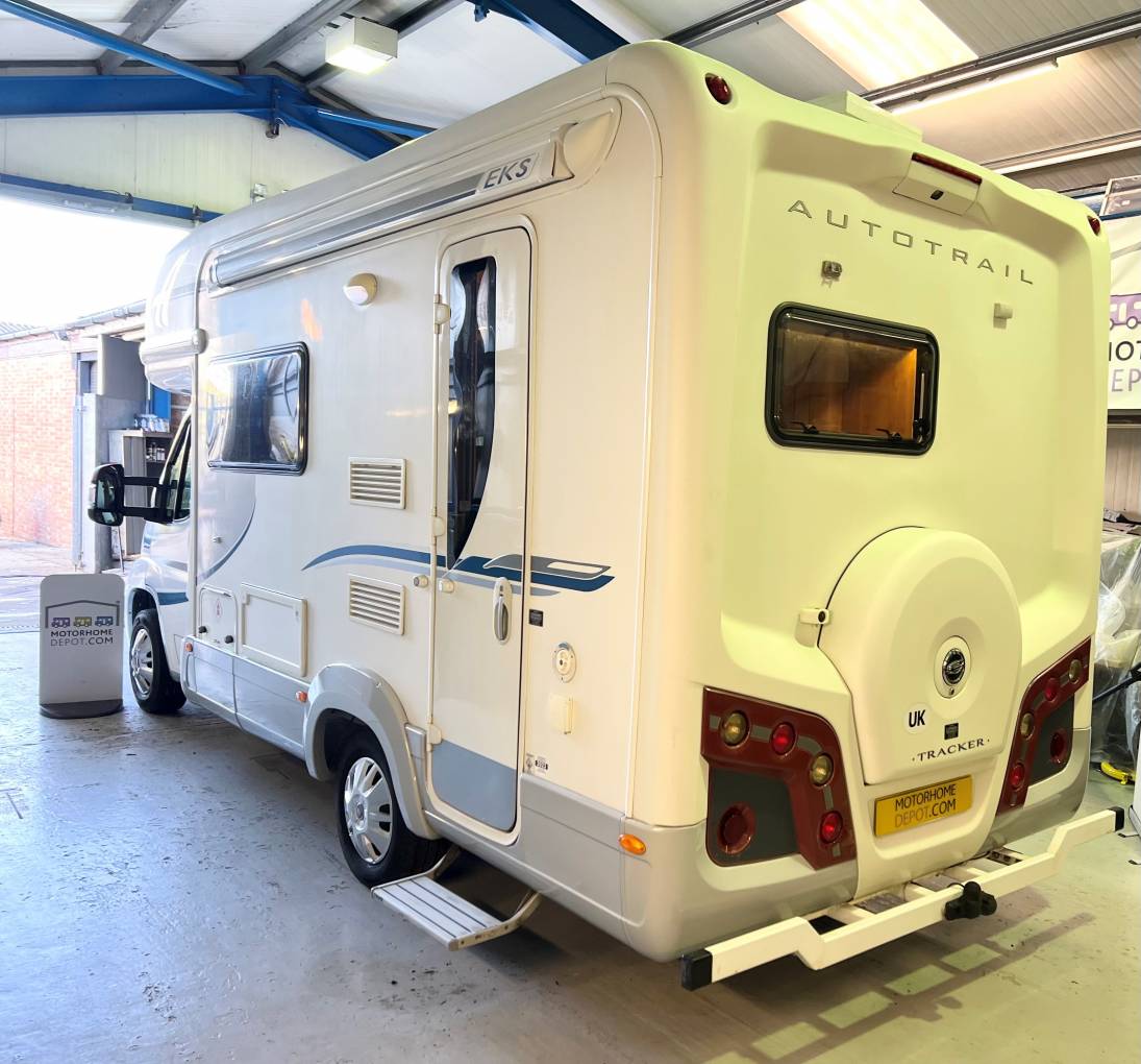 Introducing this 2010 Autotrail Tracker EKS SE at outstanding value. This motorhome with 2 Berths & 2 Travelling Seats is a well-equipped motorhome with a lovely bright and airy living area and the very popular end kitchen layout. Entering on the rear right-hand side, you have the end kitchen, which is well-equipped with, a large oven, separate grill, four burner hob (3 gas 1 electric), sink with mixer tap, three-way fridge with icebox and good storage space from both base cupboards and roof lockers. The main living area has two swivelling Captains seats and further seating for four more in comfort around a good-sized dining table that can be stowed away to maximise living space. This area has a bright & open feel and is great for relaxing. At night-time, the seating easily converts into a large double bed, or alternatively can be used as two singles measuring.