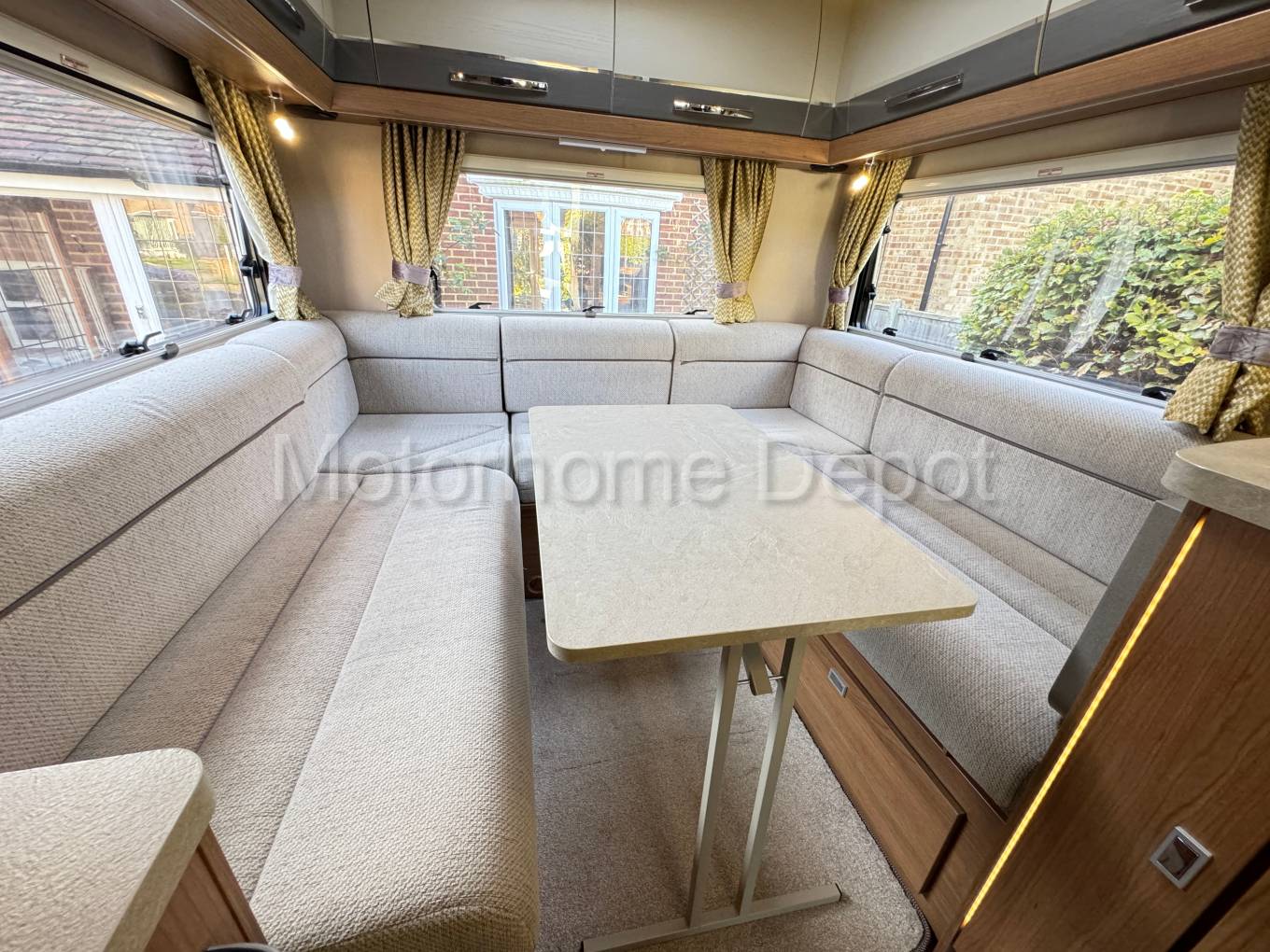 Heating & Hot water is supplied by Gas or Electric Truma Ultraheat & Ultrastore system. Loose fit carpets, ample storage; black out blinds and fly screens throughout.
