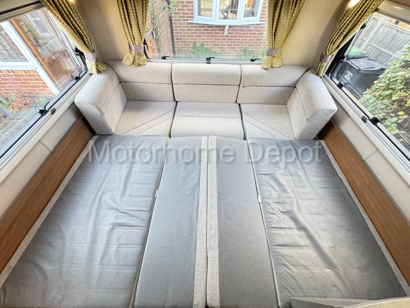 The main double bed is made up from the rear lounge area by pulling out a slatted section from the rear & the mattress being made up from the sofa cushions. Alternatively you could use as two 6' single beds.