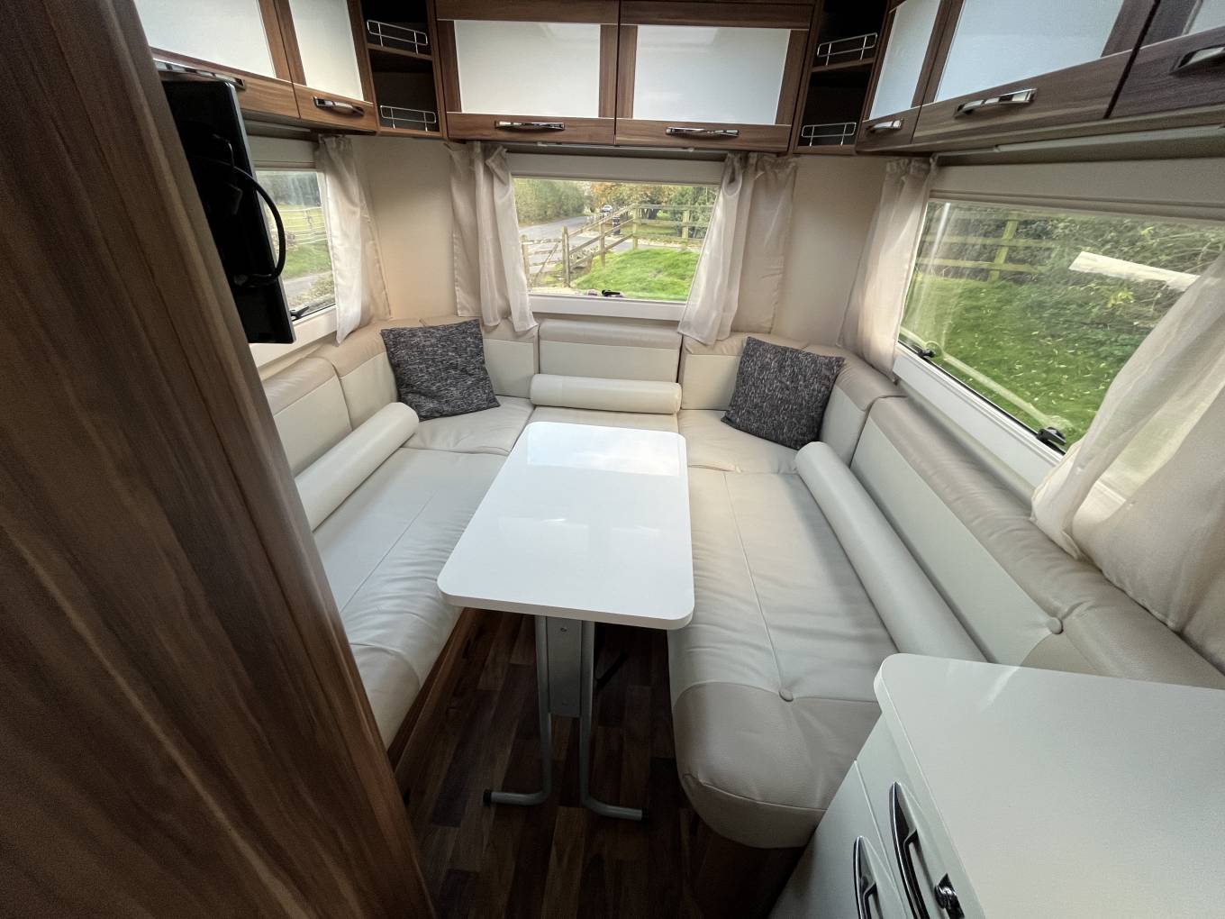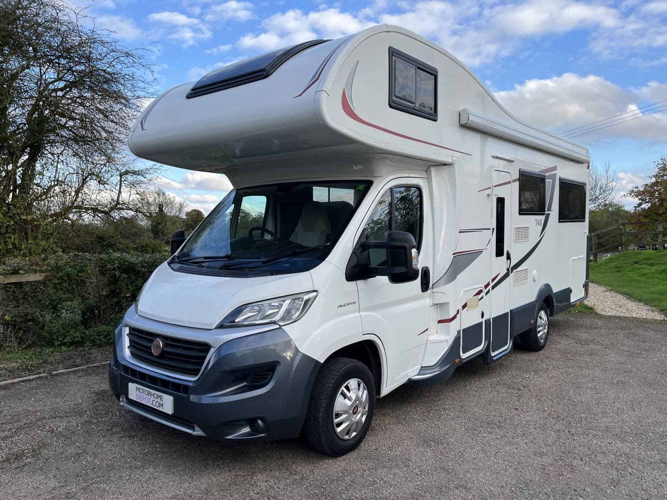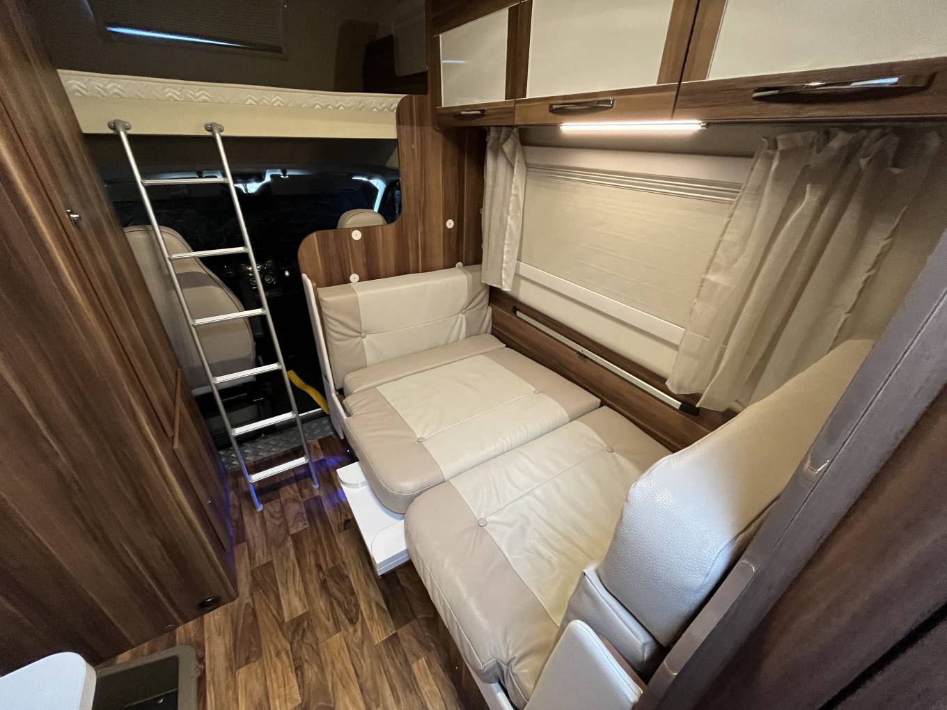 The 2016 Rollerteam Auto-Roller 746A is a spacious, versatile motorhome designed for family and group travel. This model offers a well-thought-out interior layout with two main lounge areas, a rear U-shaped lounge ideal for relaxation and a forward dinette that can seat up to six people. The U-shaped lounge easily converts into a large double bed, while the dinette transforms into another double bed, plus there’s a drop-down double bed above the lounge for extra sleeping space, comfortably accommodating six people.