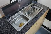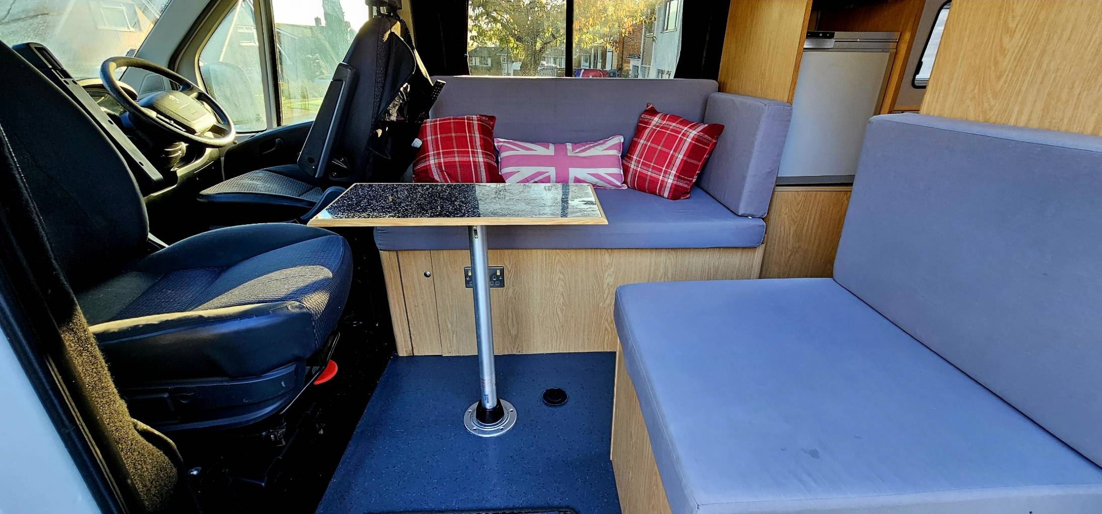This vehicle is a basic van conversion, but done to a good standard, with smple facilities such as hot water, hob, toilet and shower. The front dinette seats 5 if required and makes up in 2 minutes to a decent sized comfortable double bed. There is a bike rack, 150w solar panel with controller and 1 swivel front seat. the vehicle has plemty of storage lockers both in the front dinette and in the kitchen area at the rear.