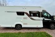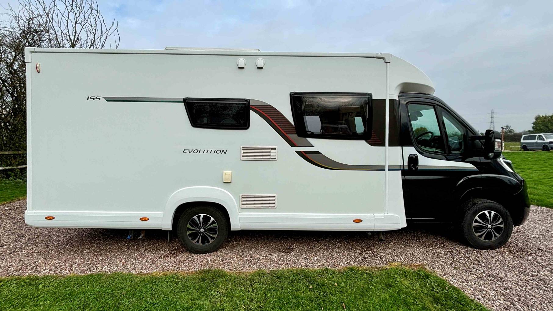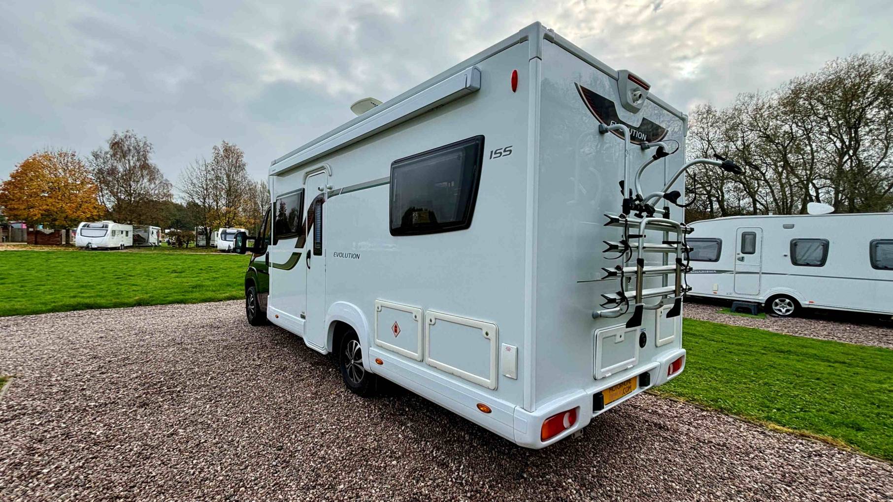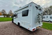 The motorhome comes with 4 travelling seatbelts, driver and passenger airbags, electric windows and mirrors, radio, multi-functional steering wheel, colour reversing/in-view camera, Bluetooth, USB points, cab air con, cruise control, reversing camera, concertina front blinds, transferrable tracker, Solar panel, aerial, TV, microwave, bike rack for 4 bikes, wind out awning, 240v hook-up cable, removeable carpets, steering wheel lock, 2 gas bottles and external shower and gas points.