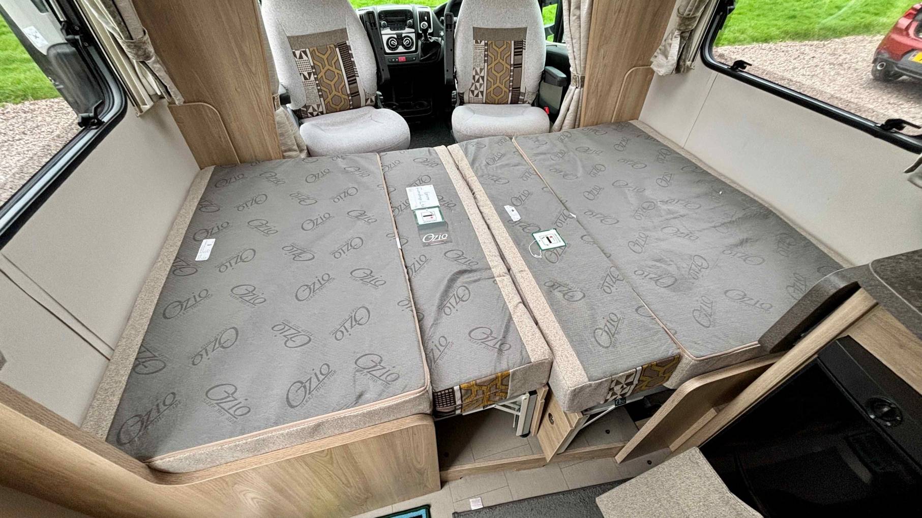 The great feature of this motorhome are the two additional travelling seats which are cleverly collapsed and stored beneath the bench seats when not in use.