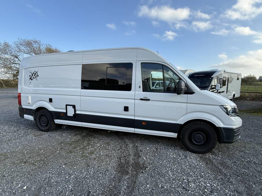 VW Crafter LWB CR35TDI 140ps (2018) 67 plate, ultra low miles immaculate condition inside and out this is one of the best conversions we have had this year featuring a handmade leather seating area which is sure to draw some interest.