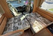 The lounge area behind the cab seats comes in really good condition, provides plenty of natural light and can be used as a double bed by utilizing the two side facing lounge seats which also gives you a large social Dinette Area. When this bed is not in use you will find this area is a great space to relax, eat and enjoy eachothers company. The Cab area is clean and tidy and both seats swivel around into the lounge area.