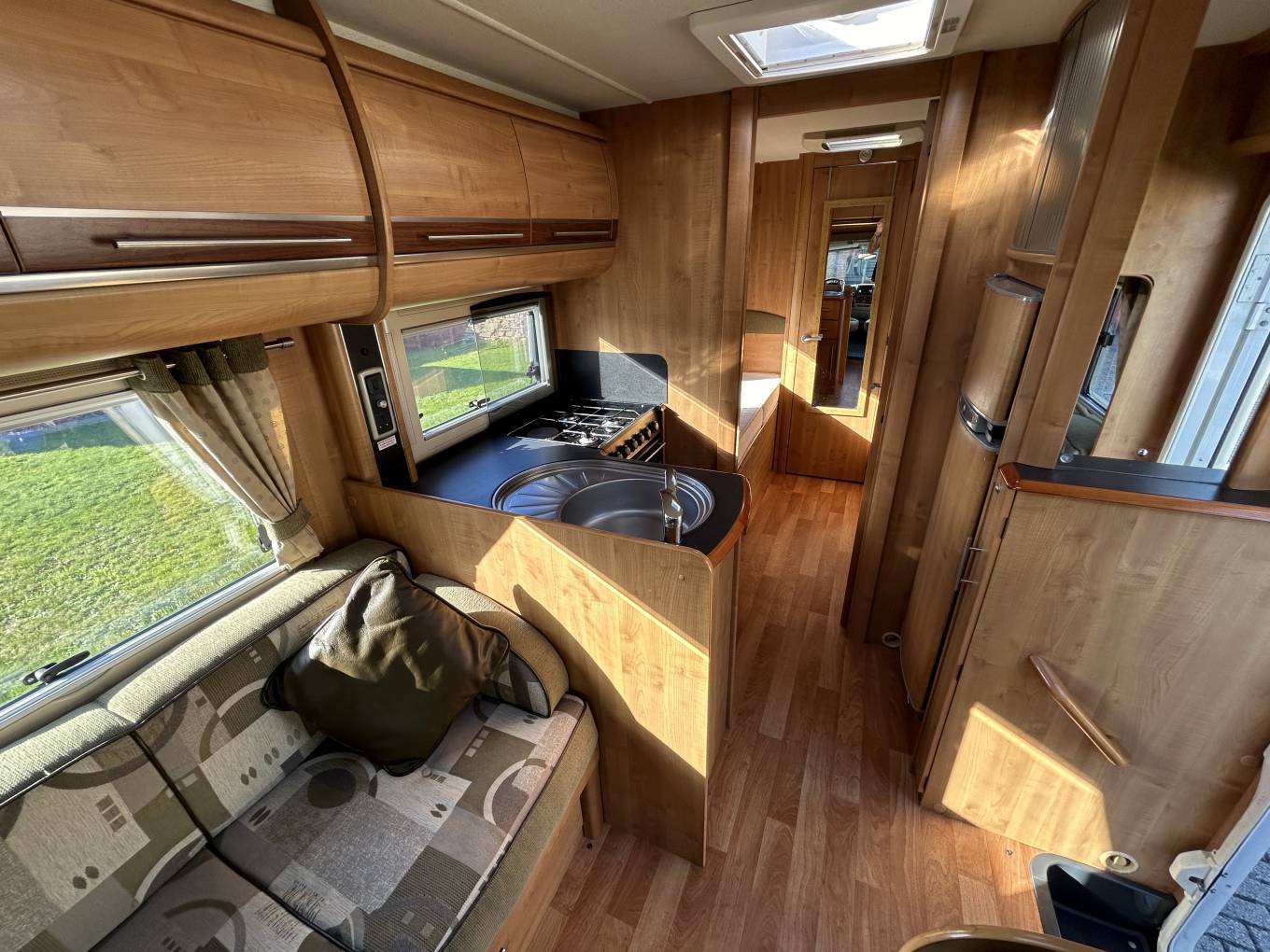 The kitchen is behind the Centre Dinette Area and across from the habitation door which allows extra ventilation when cooking a hearty meal for any occasion and comes with 3 Gas Hobs, 1 Electric Plate, Hot and Cold Mixer Tap, Fridge with Freezer space and a nice sized fridge with a separate freezer space and above here you have an area in which you could use for a microwave.