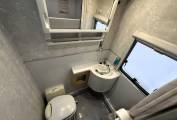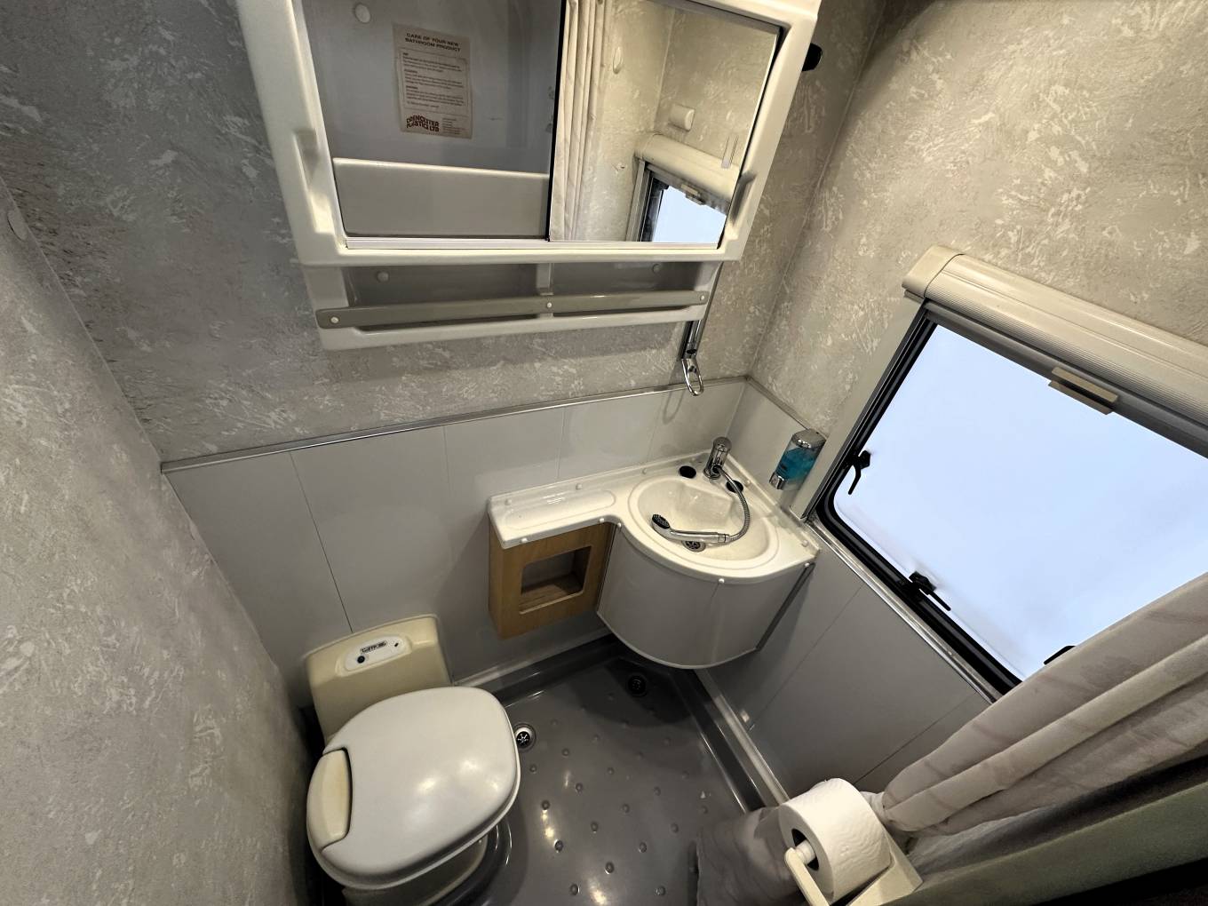 of the motorhome and consists of an integrated shower, swivel seat cassette toilet,