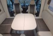 right is the dinette which has a 2-seater sofa next to the habitation door and
