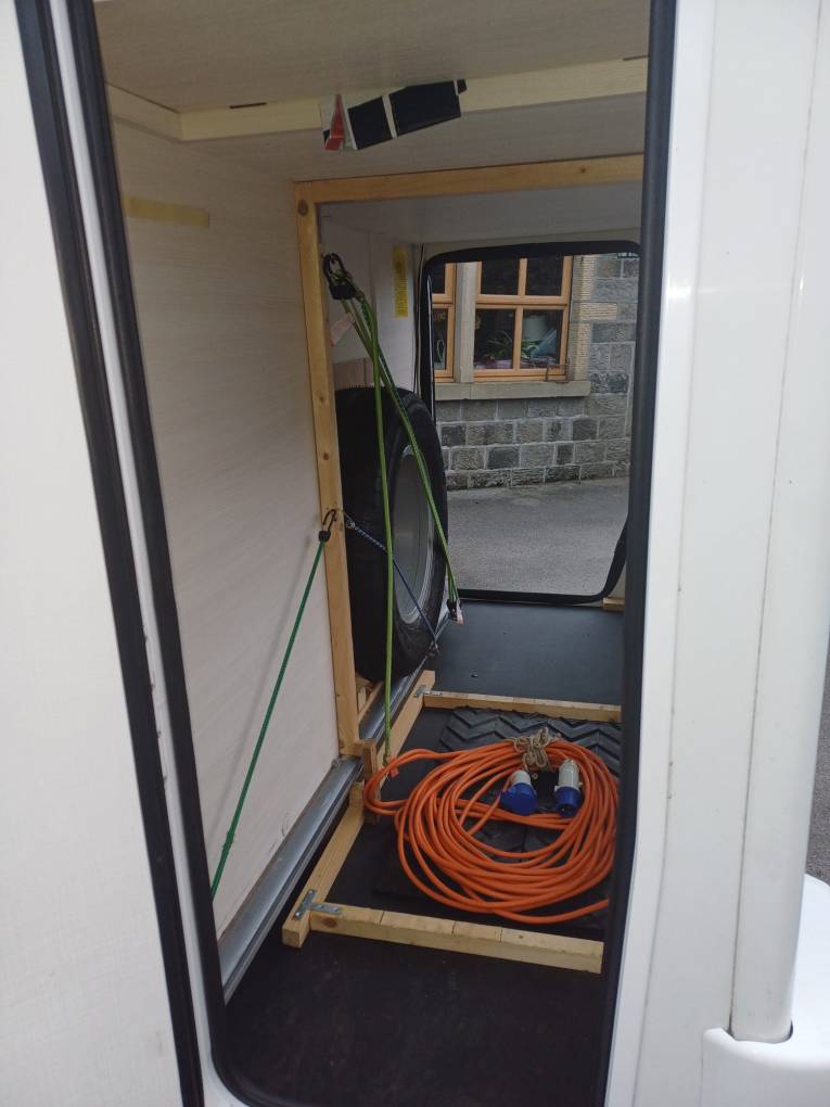 contains the consumer unit and water fill point; Electric hook up point; Tall
