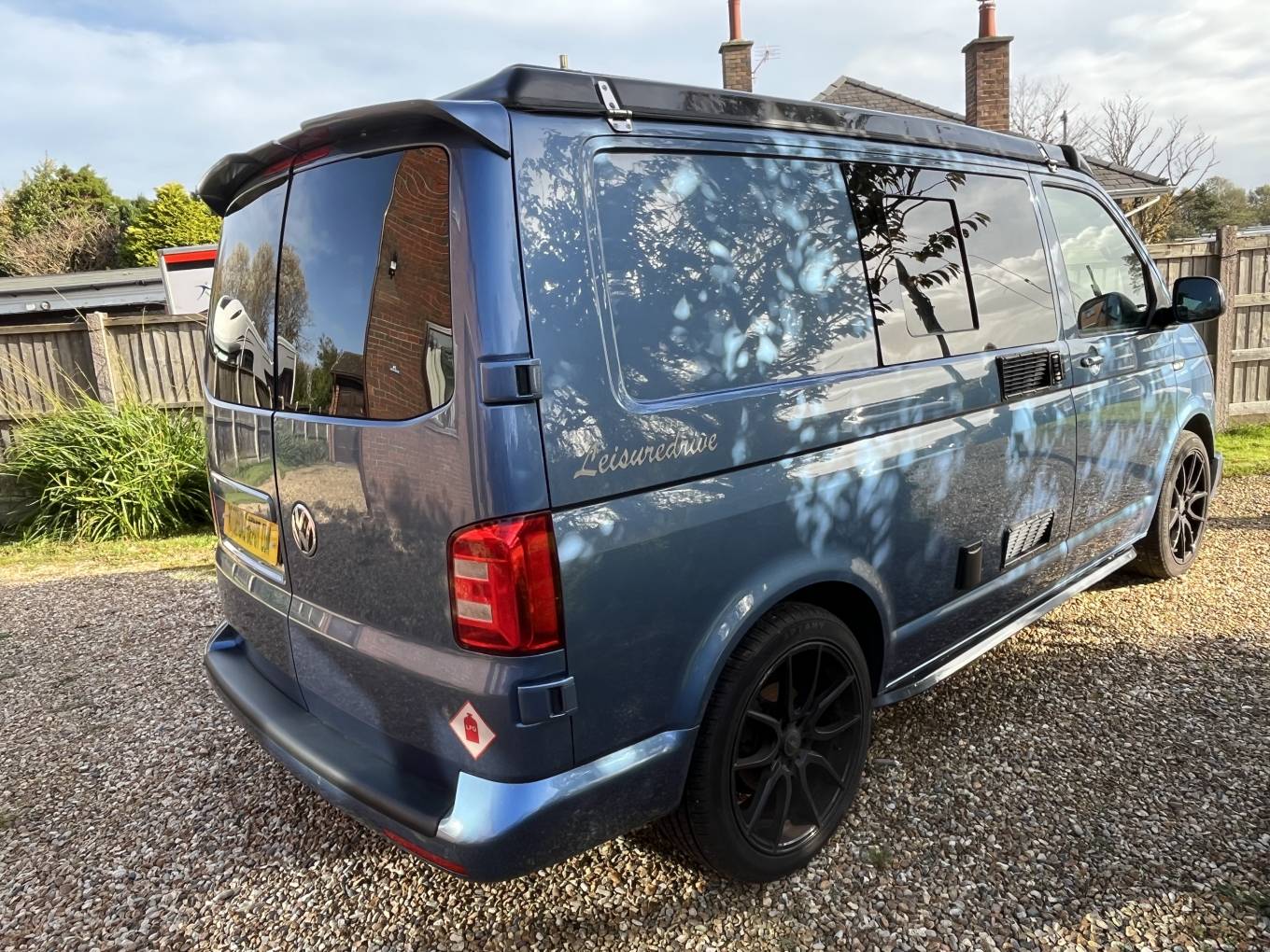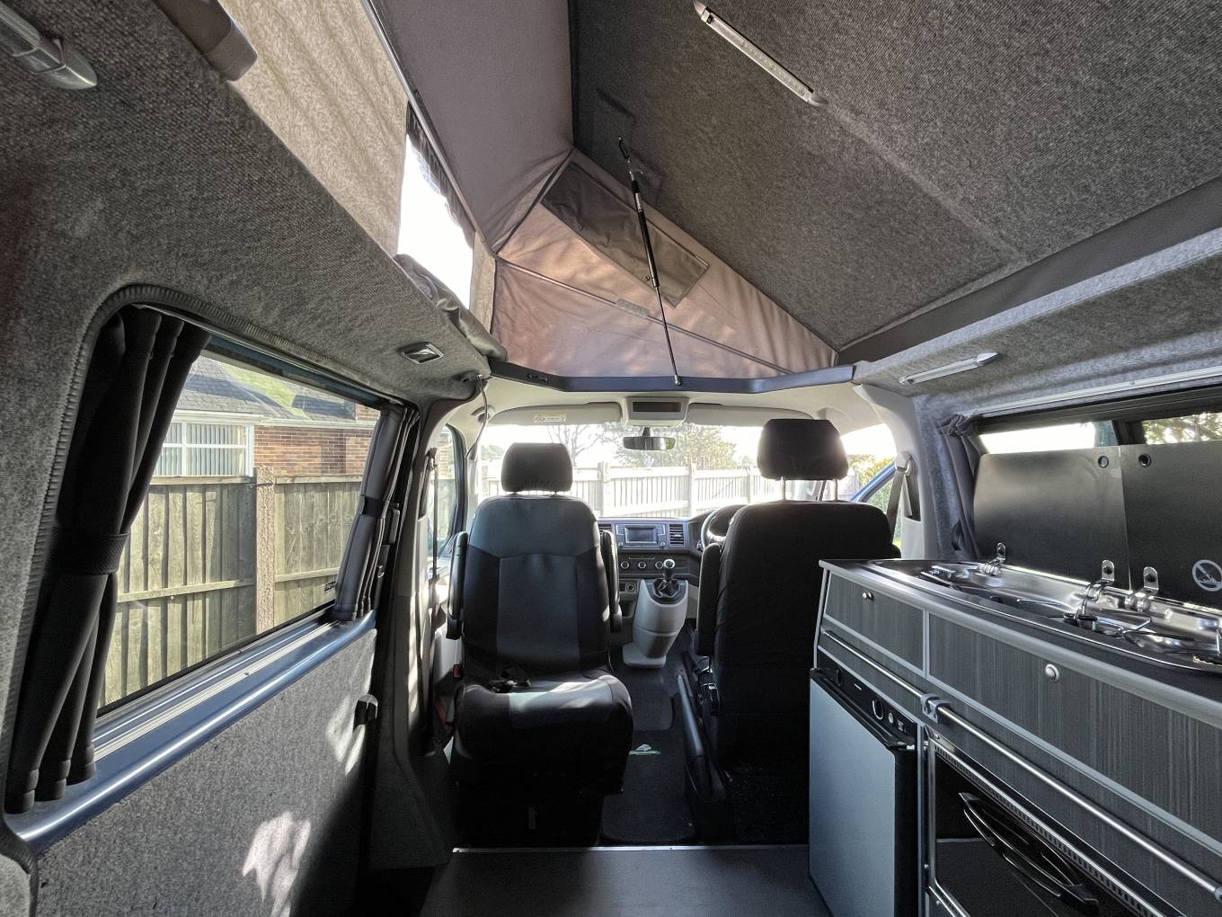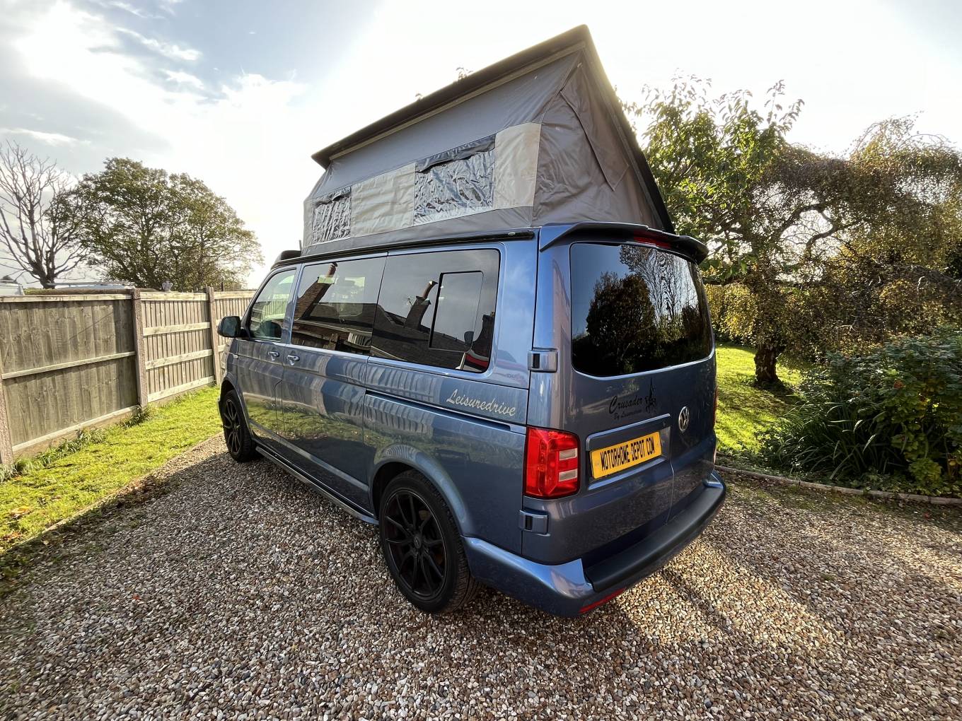 VW T6 Leisuredrive Crusader, 4 Berth Camper with Side Elevating Roof. This is a nice clean van professionally converted by Leisuredrive, it has been well looked after with good srevice history. As you step into the van the side elevating roof gives good head room along the full length of the van. At the rear is the rock and roll bed with 2 seat belts and above this bed boards can be put into the roof space to create a further sleeping area for 2 people. The kitchen is well equipped with Hob, Grill, Oven and 3 Way Fridge and at the front the passenger seat swivels. It is fitted with mains sockets, consumer unit, control panel, leisure battery and charger. It comes with 4 Seat Belts, Cab Air Con, Rear Sensors, Central Locking, Alloy Wheels, Porta Potti, 2 sets of keys, Gas Bottle and Drive Away Awning. An excellent example available for viewing by appointment in Southport. Call for more photos, videos and information.