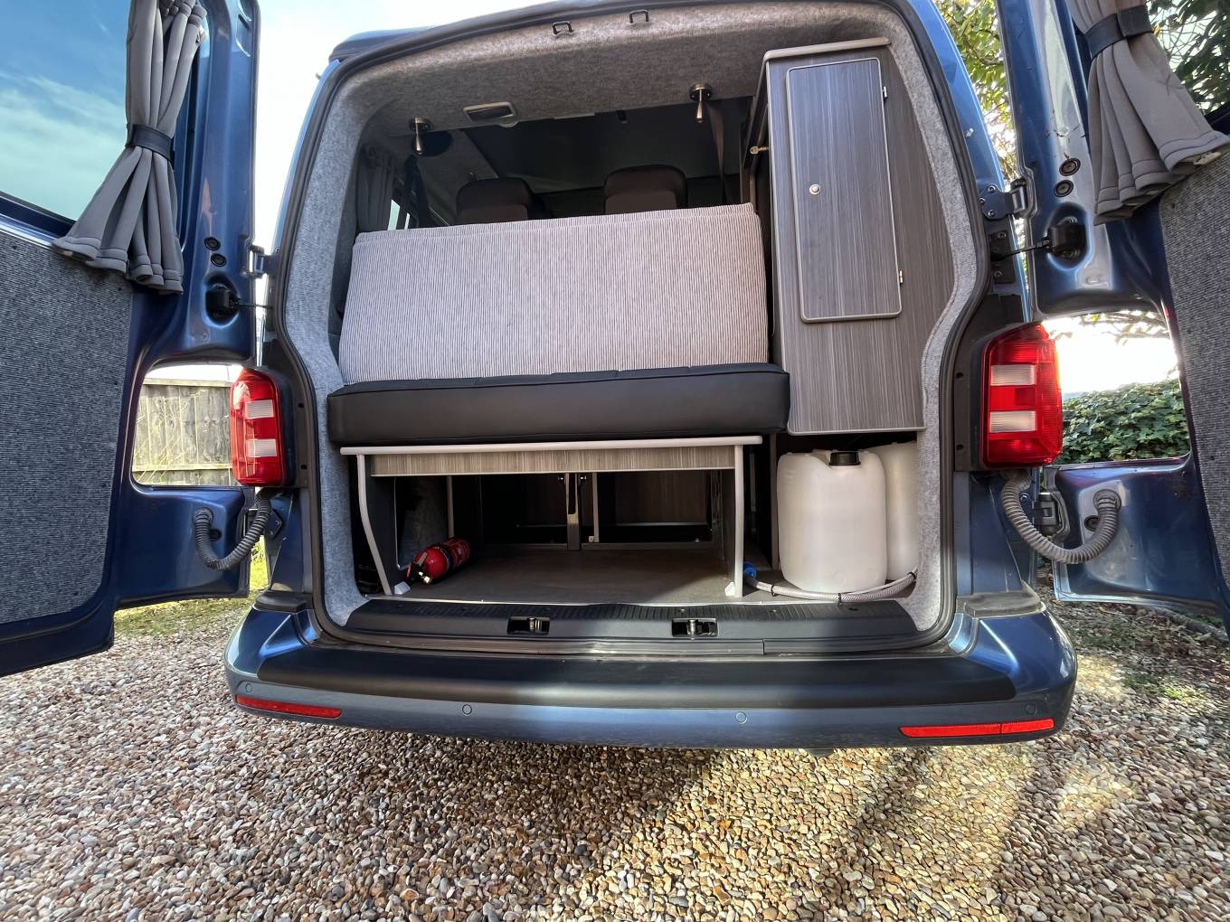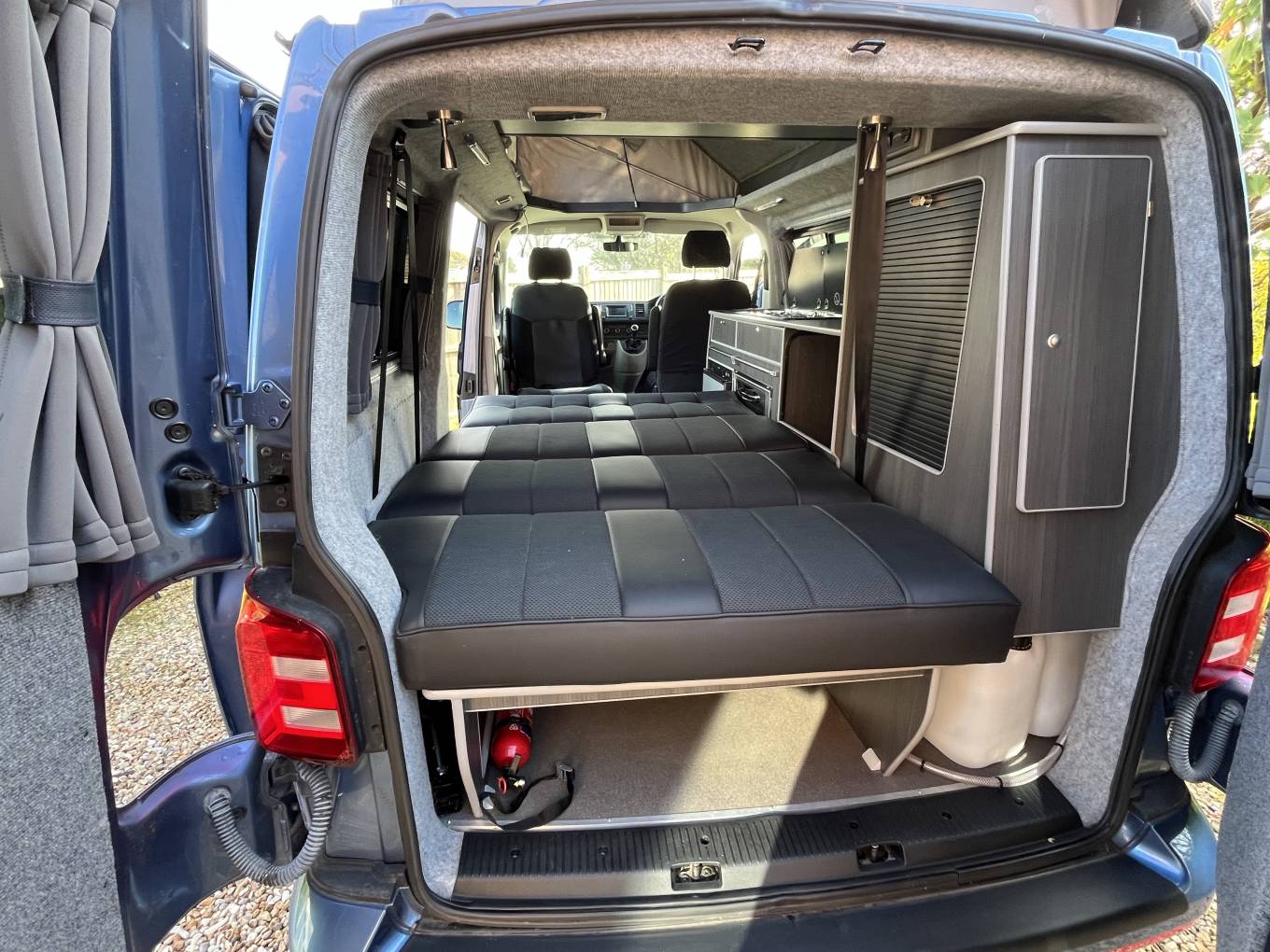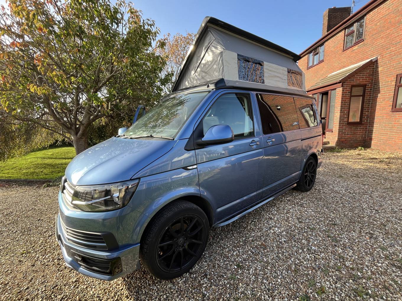 VW T6 Leisuredrive Crusader, 4 Berth Camper with Side Elevating Roof. This is a nice clean van professionally converted by Leisuredrive, it has been well looked after with good srevice history. As you step into the van the side elevating roof gives good head room along the full length of the van. At the rear is the rock and roll bed with 2 seat belts and above this bed boards can be put into the roof space to create a further sleeping area for 2 people. The kitchen is well equipped with Hob, Grill, Oven and 3 Way Fridge and at the front the passenger seat swivels. It is fitted with mains sockets, consumer unit, control panel, leisure battery and charger. It comes with 4 Seat Belts, Cab Air Con, Rear Sensors, Central Locking, Alloy Wheels, Porta Potti, 2 sets of keys, Gas Bottle and Drive Away Awning. An excellent example available for viewing by appointment in Southport. Call for more photos, videos and information.