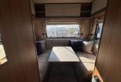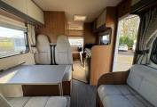 A coach built 6 berth 5 belt motorhome with a weight plate of 3500kg so can be driven on a normal car licence Based on the ultra reliable Fiat Ducato chassis with the popular 2.3 Diesel engine this is a great family focussed motorhome with a spacious rear lounge which converts to a large double bed, the second double bed is over the front cab with the mid dinette making up the third sleeping area.