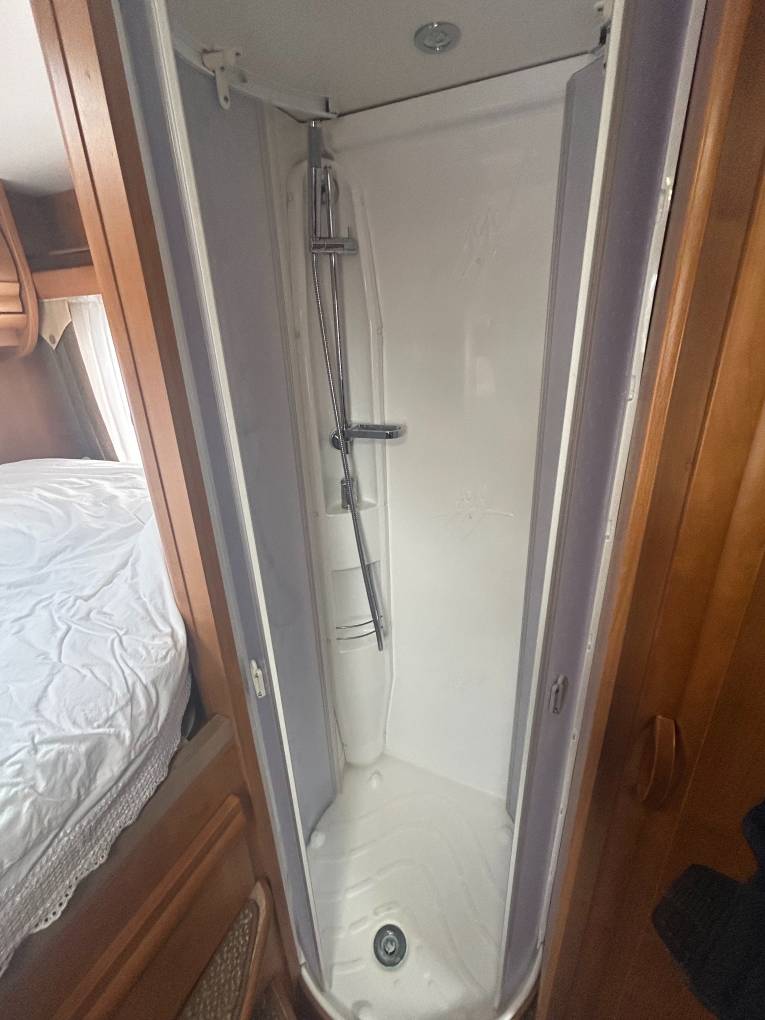 Your privacy is paramount, with a hallway wardrobe and sliding door that separate the bedroom and living areas. The washroom offers a luxurious experience with a separate shower cubicle. The toilet area has a cassette toilet, sink and mixer tap, mirror, and ample storage. Every inch of this motorhome is thoughtfully designed, with numerous storage compartments above, below, and even under the seats, while the massive garage offers space for all your essentials. The refillable gas bottles makes it easy to keep topped up. This Rapido 977M boasts excellent outdoor features, too. A wind-out canopy creates instant shade, and the included Safari room offers a comfortable outdoor space. Plus, you’re ready for anything with external shower and BBQ points, solar panel power, an inverter, two leisure batteries, bike rack, tow bar, and satellite dish.