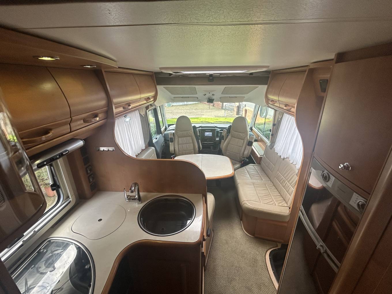 Discover the open road in the luxurious Rapido 977M, built on the reliable Mercedes Sprinter chassis with a smooth 2.2 automatic drive. From the moment you step inside, you'll feel the elegance of cream leather upholstery, two plush captain seats, and an updated Sony stereo system with Bluetooth that connects seamlessly to your devices, all enhanced by cab air conditioning and cruise control. Whether you're navigating or parking, the steering wheel controls and reverse camera make every moment stress-free.