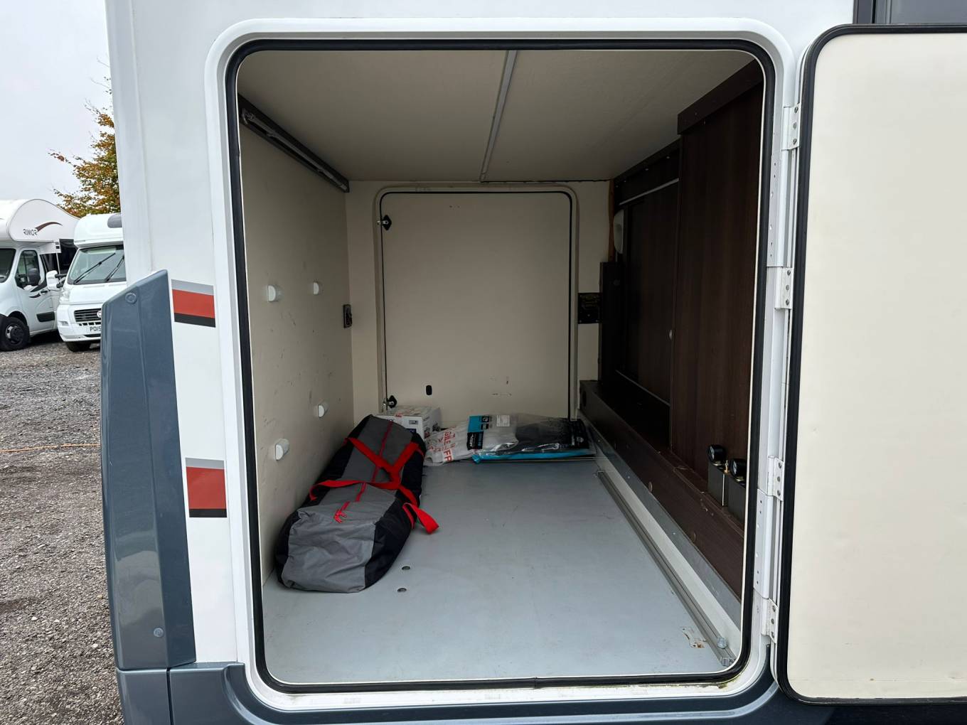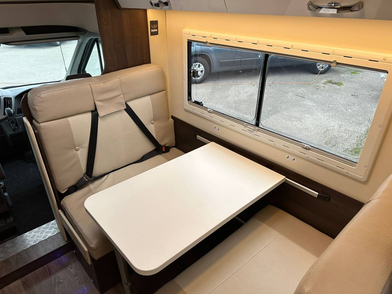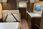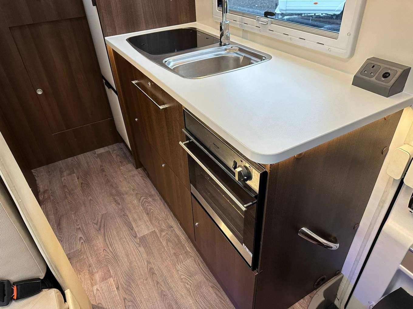 Motorhome Depot Retail near Farnsfield present this well cared for Roller Team Zafiro 690 2018 model. At the heart is the reliable Ford 2.0l auto vehicle running on diesel and under the total 3500kg required for a normal car license. This 6 berth, 6 seatbelt vehicle provides luxury and space which is just perfect for family travel and life. Sleeping accommodation is in a large over cab double with safety net, a double converted from the forward dinette and a large rear transverse fixed double situated over the large garage space at the rear. The washroom has a toilet and sink with mixer taps, skylight and vanity units alongside a full height separate shower cubicle. The kitchen area in the middle of the vehicle has a 3 ring gas hob, large sink with mixer taps, expansive preparation area to the side of the hob, Thetford duplex oven incorporating grill, very large fridge including a freezer compartment and lots of lockers and low level cupboards. There is ample storage throughout the vehicle including a massive wardrobe, to the side of this is a wall mounted TV and bracket and there is beautiful LED lighting throughout. There is a roof mounted solar panel which keeps the leisure power topped up when off grid. On the outside the vehicle has a reversing camera. The garage is a particular feature of this motorhome with access via massive doors either side and enough space for several bikes and camping equipment. There is also a large awning to the side for shade or cover.