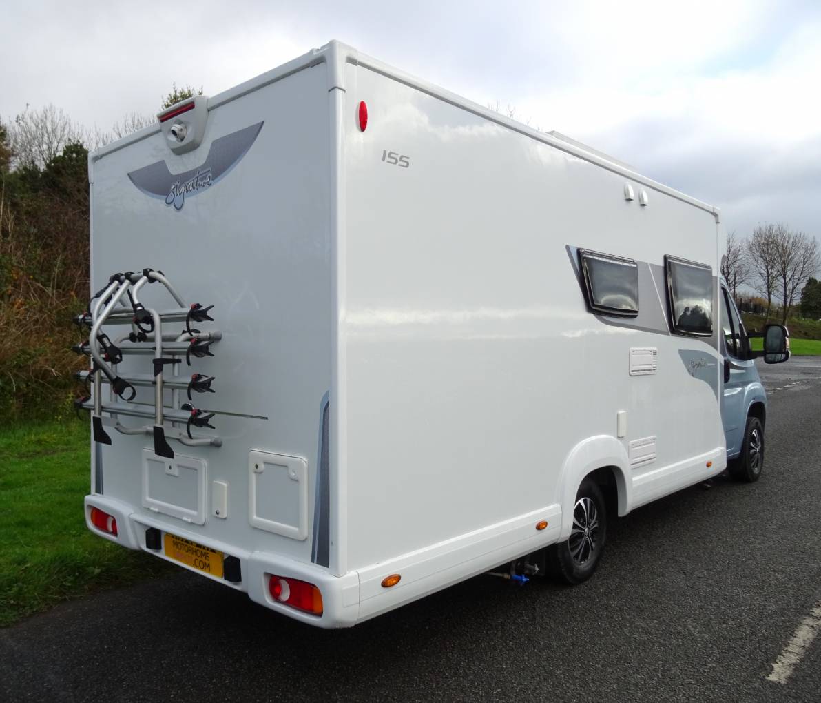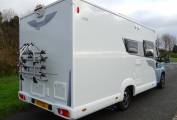 To the rear there is a bike rack and the Thetford toilet cassette locker and a locker with access to 240v Hook Up and Leisure Battery and also the water fill up point.