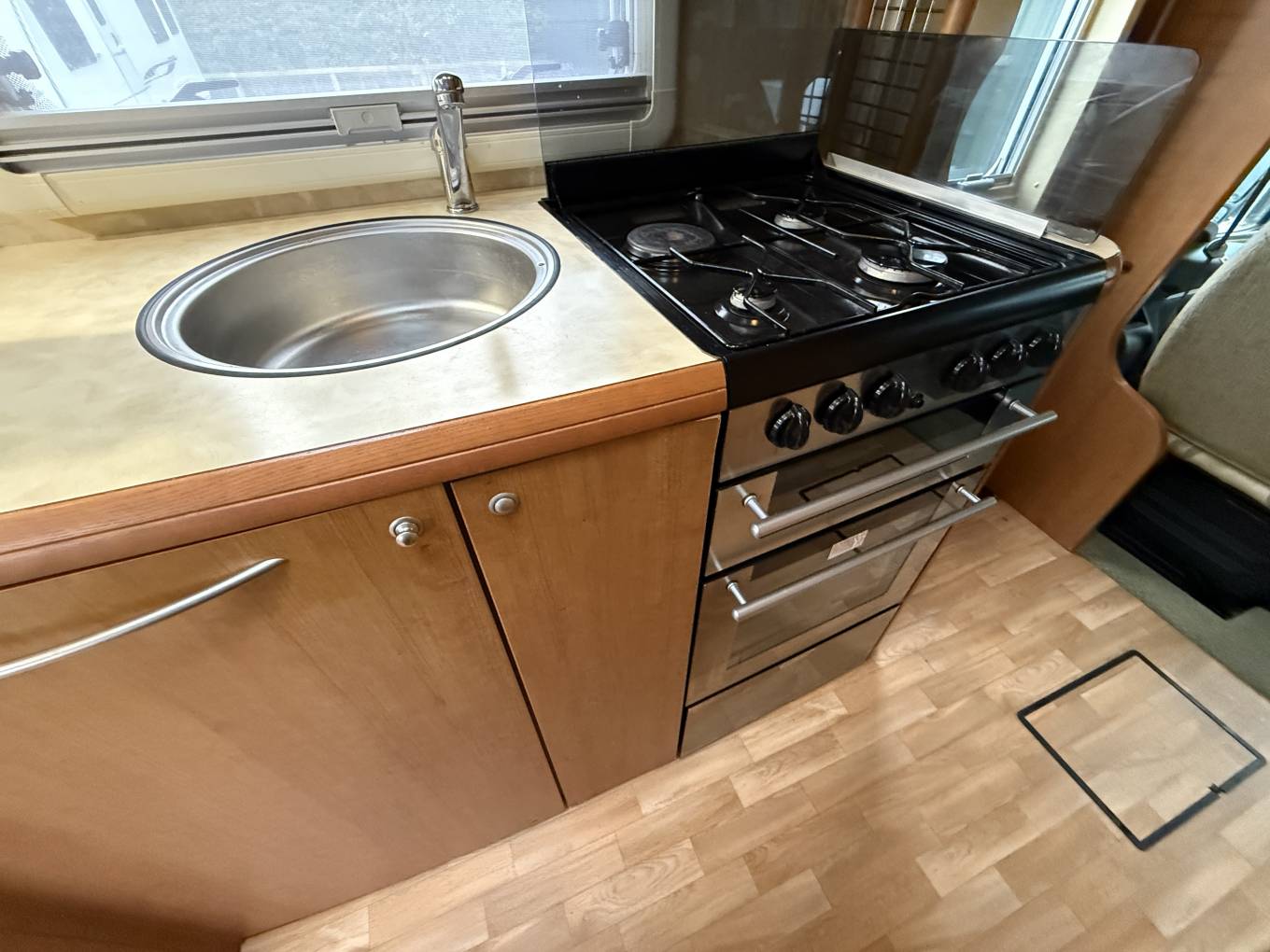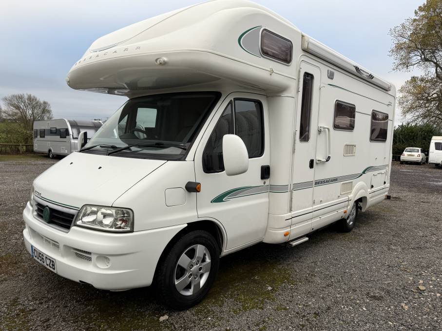 Bessacarr Elegance E725 56 plate 4 berth 2 belt with low miles in excellent condition and drives lovely this Bessacarr has the spacious rear lounge that converts to a large double bed with the second double drop down over the front seats, well equipped kitchen with gas and electric hob, grill and oven and decent size sink, it has a tow bar, tv, tyre pressure monitor ,Apple car play, all 4 alloys in great condition includes a gas bottle and all leads etc ready to go on its next adventure