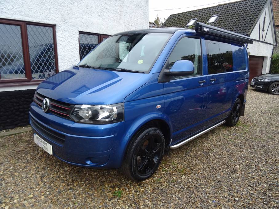 Motorhome depot Norwich are pleased to offer this Volkswagen T5.1 semi automatic 4 berth 2011 T32 SWB Pop Top with 98,856 miles. Located in the Norwich area. On entering the side door you have the kitchen area with sink, 2 gas rings, fridge with worktop and lots of storage space. The passenger captain seat swivels round making the central seating area very comfortable and a great socialising space with removable table that neatly store away. To the back, the rear seat easily makes into a good size double bed with storage underneath. The pop top bed comfortably sleeps 2 people. Other great features cab aircon, diesel heating, leisure battery, solar panel, wind out awning, alloy wheels and plenty of storage through out. MOT expires 14/03/2025 recent gas certificate, cambelt replaced 2024 it just had 2 new front tyres. Pop top canvas replaced in 2021 last service 16/08/2024. This is a great looking camper and well worth a look.