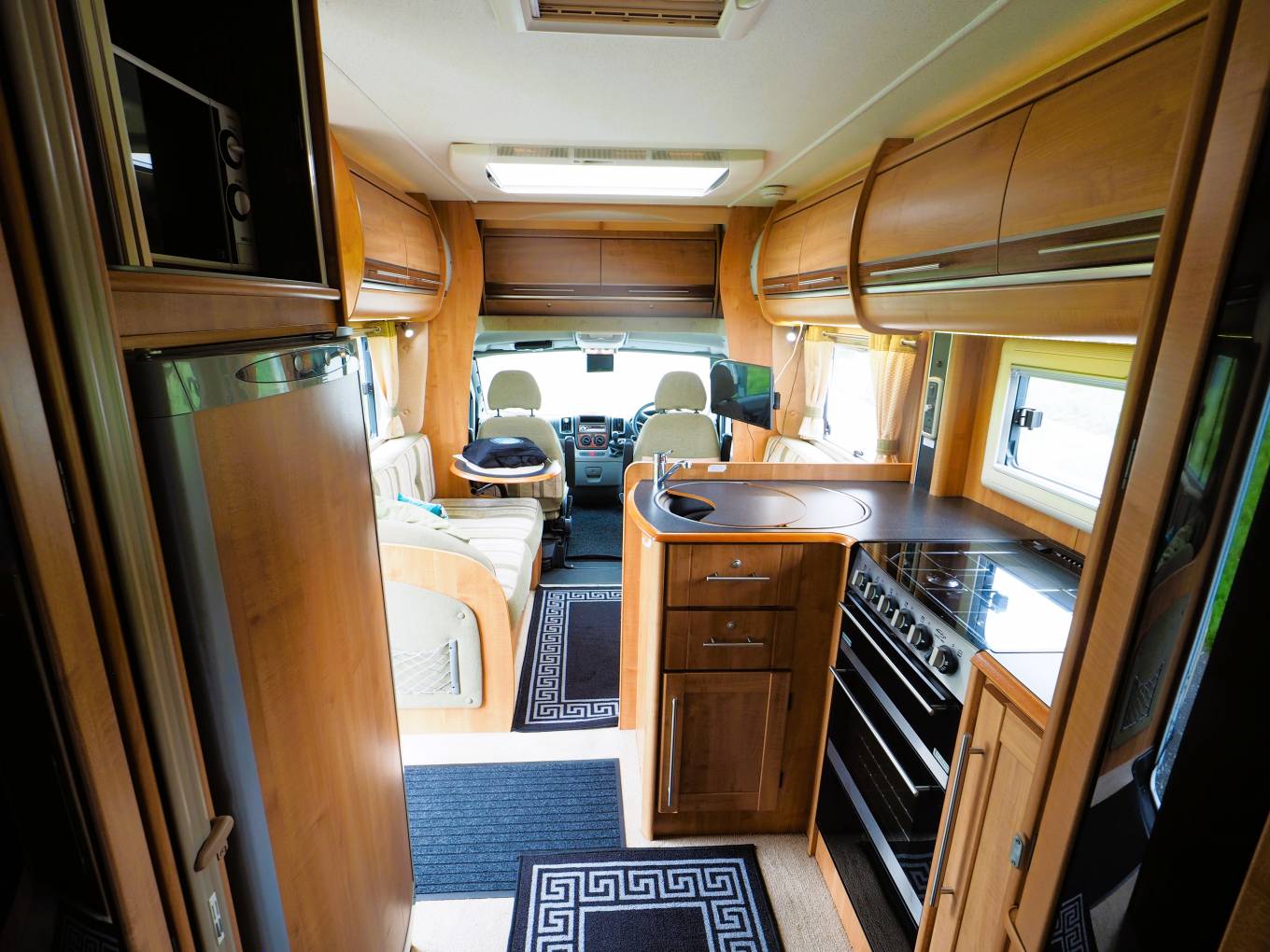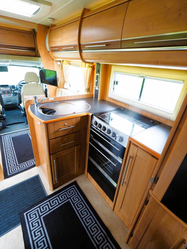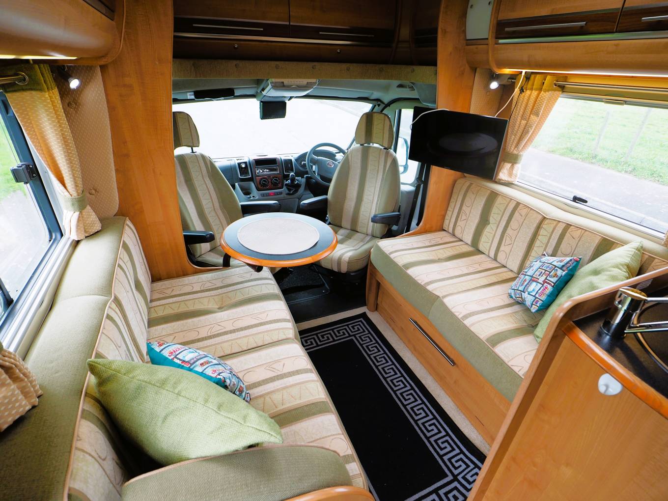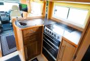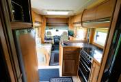 Large lounge with two comfortable side sofas and the two front captains chairs swivel into the habitation area to provide space for up to 6 adults. An occassional side table and drop in dining table create a great place to relax, dine and entertain and if needed they can be used to provide two small single beds or pulls out to a second large double bed sleeping space. The kitchen is fully featured with 3 burner gas hob and electric hot plate, oven and separate grill, microwave oven, sink with mixer tap and large 3-way fridge with freezer box. A separate and private washroom provides home from home comfort with a flushing cassette toilet, sink and vanity and shower cubicle. For ease and convenience a good sized rear fixed double bed, with new mattress, is a great place to relax and sleep. There is a TV fitted and plenty of storage from the overhead lockers and two side wardrobes.