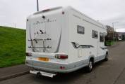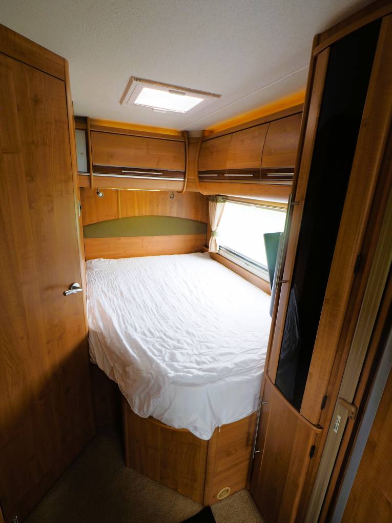 Externally there is a wind-out sun canopy, rear tow bar, bike rack, the usual access points for water, electric hook-up and gas locker with two bottles and BBQ point and shower point. A TV aerial and satellite dome is fitted to the roof. Twin leisure batteries give plenty of power when off grid and they are supported with a roof mounted solar panel and split charger.