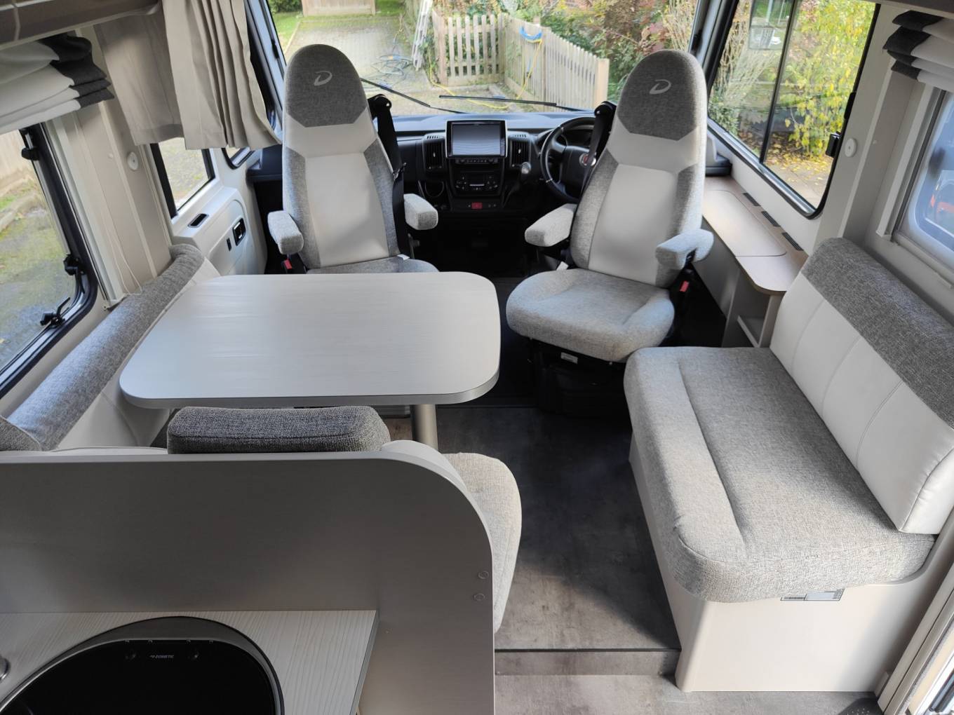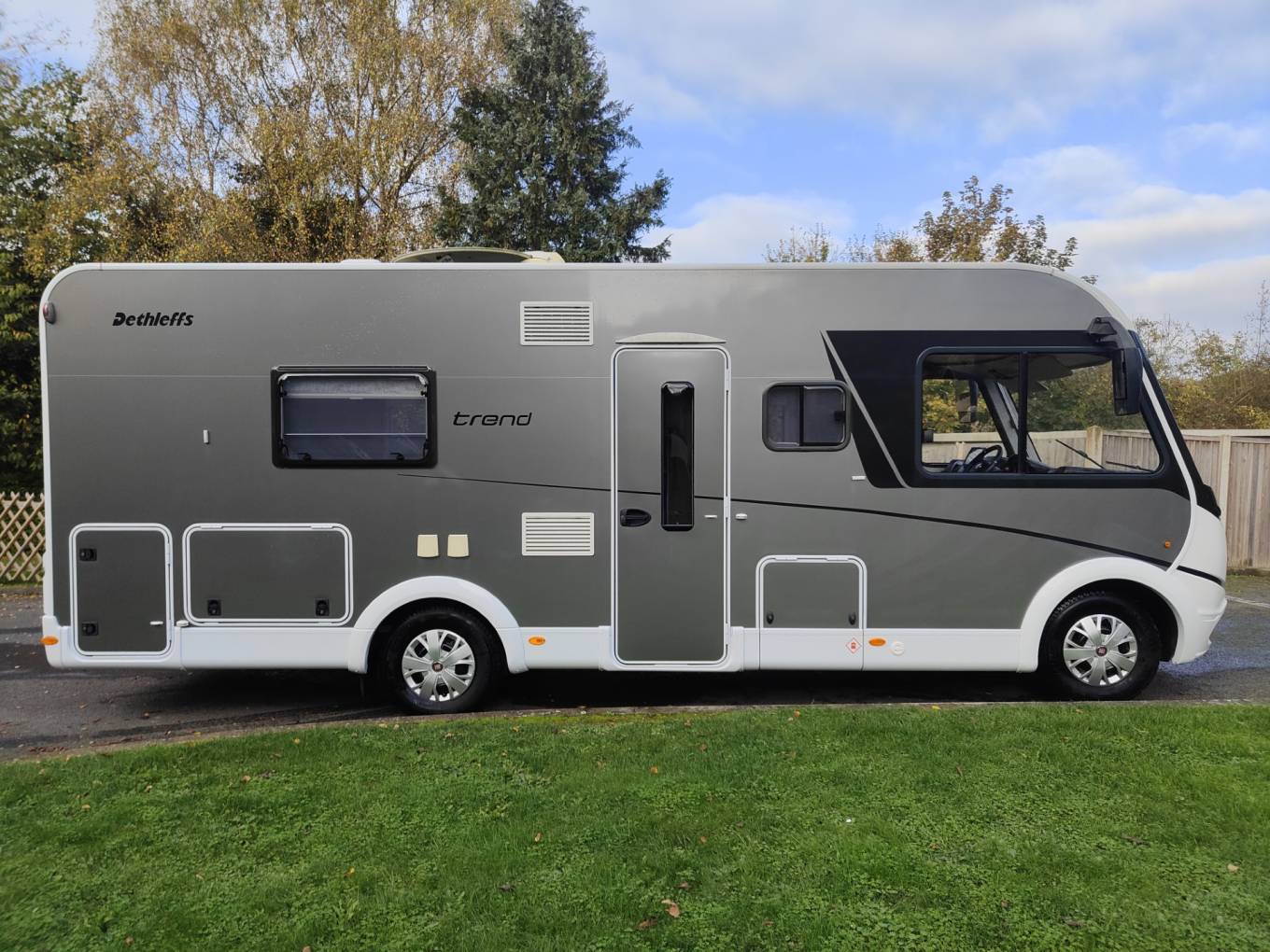This is an outstanding example of Dethleffs best selling Trend i 7017 model. This 4 berth, 4 seatbelt model is a highly sought after A class with fixed singles to the rear with a spacious drop down bed to the front. With a well equipped kitchen and a nice sized washroom with separate shower, this motorhome will suit a couple that like their space and luxuries. Based on the Fiat Ducato cab with an ALKO chassis, this 2.3 derivative features an automatic gearbox with cruise control and cab aircon. 850 miles from new with one owner. This example includes a towbar, solar panel, avtex tv, satellite dish, gaslo refillable bottles and a cat 1 alarm. Will come with a new mot and hab check. Plated at 3500kgs so can be driven by all. Based in Kent and more pictures available.