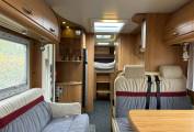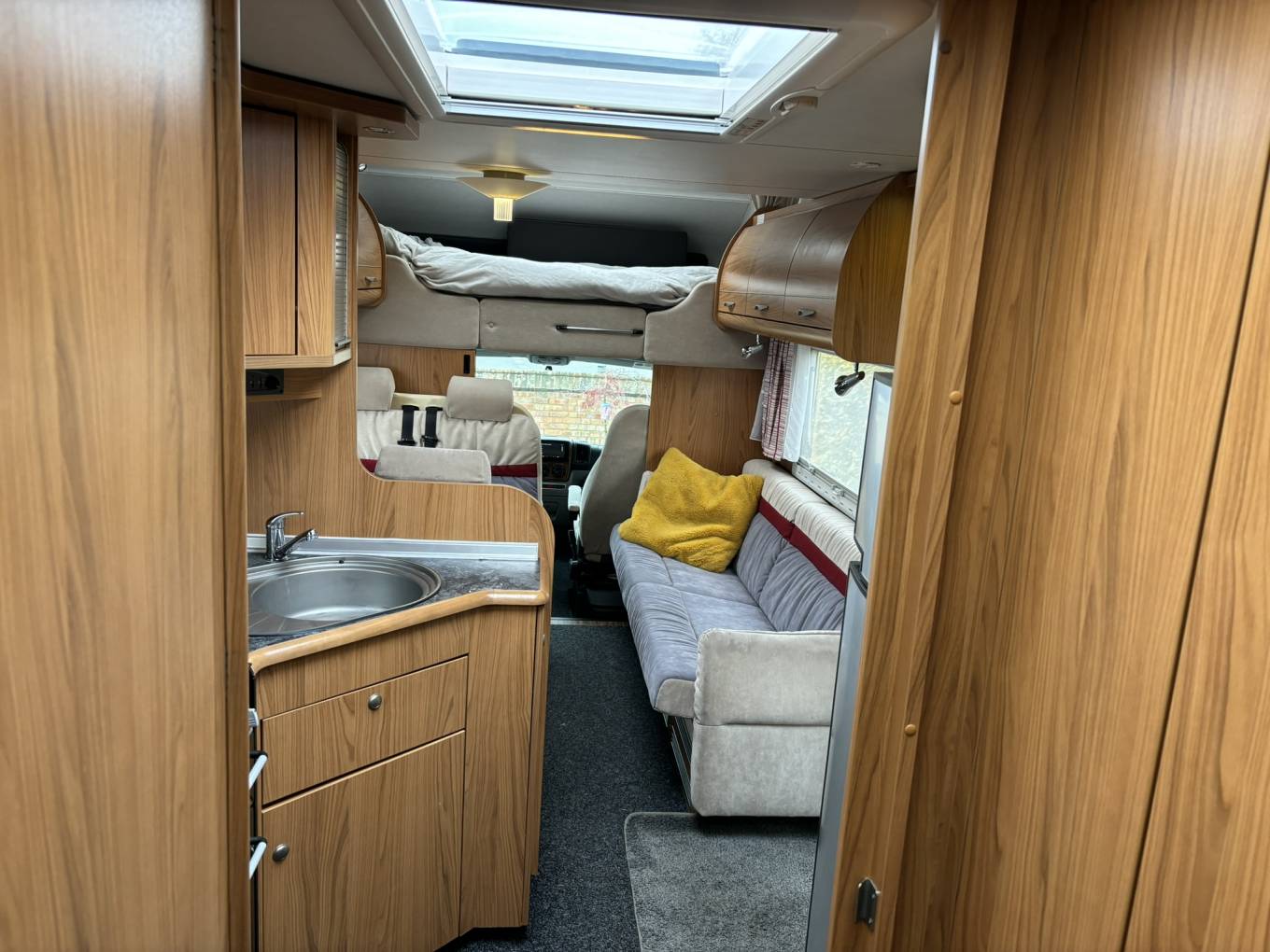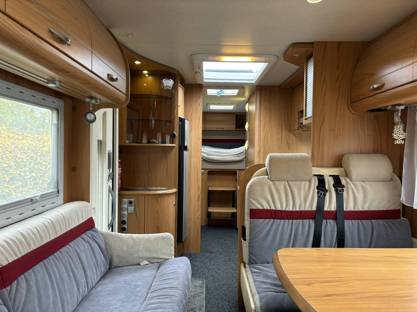 This 2009 Burstner Argos 747 is fitted on the popular Fiat Ducatto Chassis, powered by a 3.0L diesel engine. As a 7 berth motorhome, it comprises of an over cab double bed at the front, a fixed double bed at the rear as well as a double and single bed which folds out from the lounge area. It has been fitted with 4 additional seatbelts in the lounge area in addition to the 2 in the cab. With large windows throughout, including a skylight in the main habitation area and in the front overcab bed, allowing plenty of natural sunlight during the day time.
