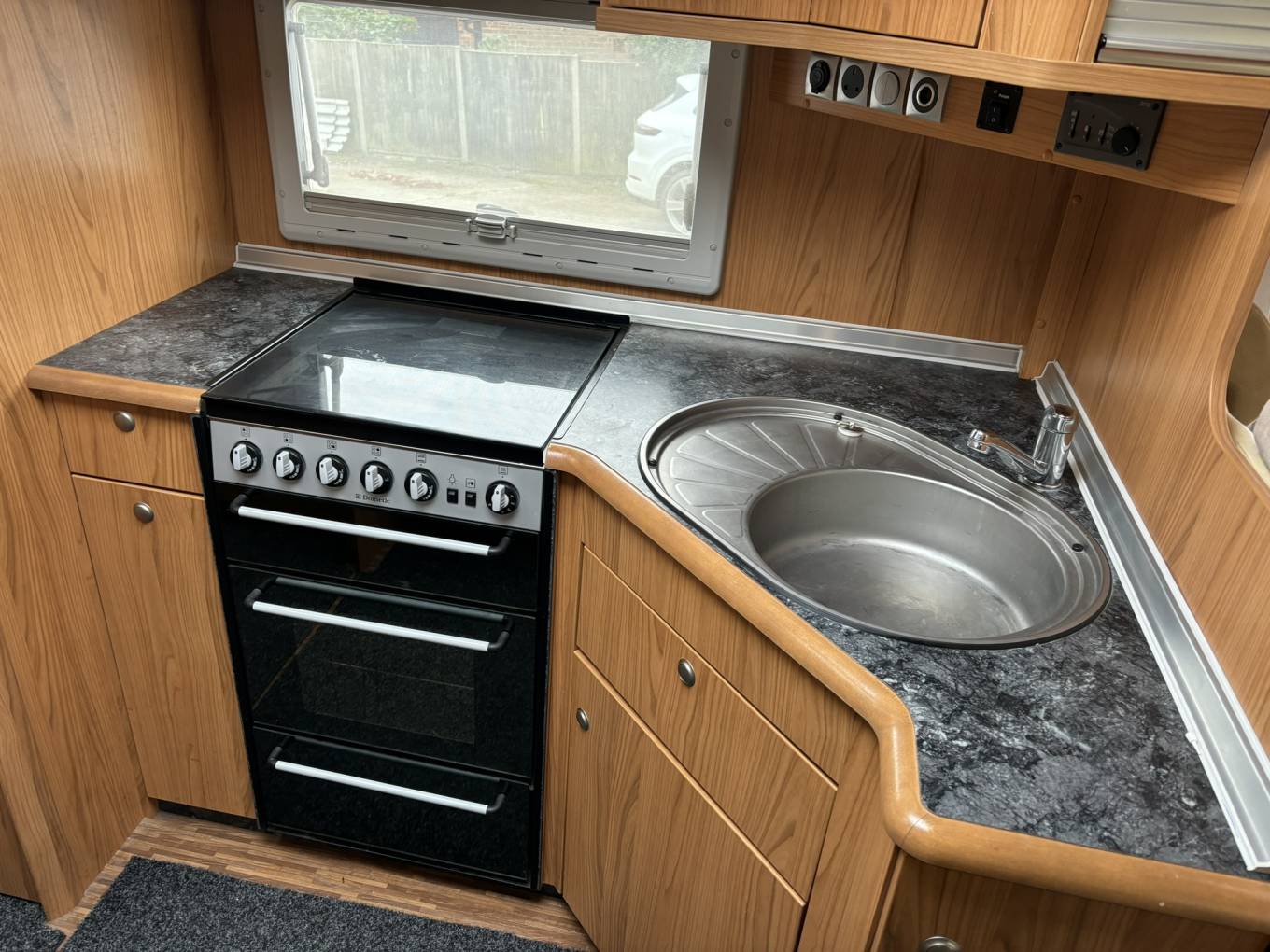 The kitchen area is fitted with all the essentials, including an oven/hob, sink, fridge/freezer and a microwave with plenty of storage and space for food preparation. The bathroom area is split with a separate shower to the toilet/sink area and plenty of storage cupboards. Solar panels have been fitted to the roof as well as an inverter with storage batteries. The Alde heating system can be powered by gas or 240V. 6 Speed manual gear box. Thule bike rack has been fitted as well as a full length roll out awning. Two digital TV's fitted, one of which is located in the rear bed area. Wifi booster has also been fitted. Roof rails and rear ladder to the rear. Large rear garage allowing plenty of storage.