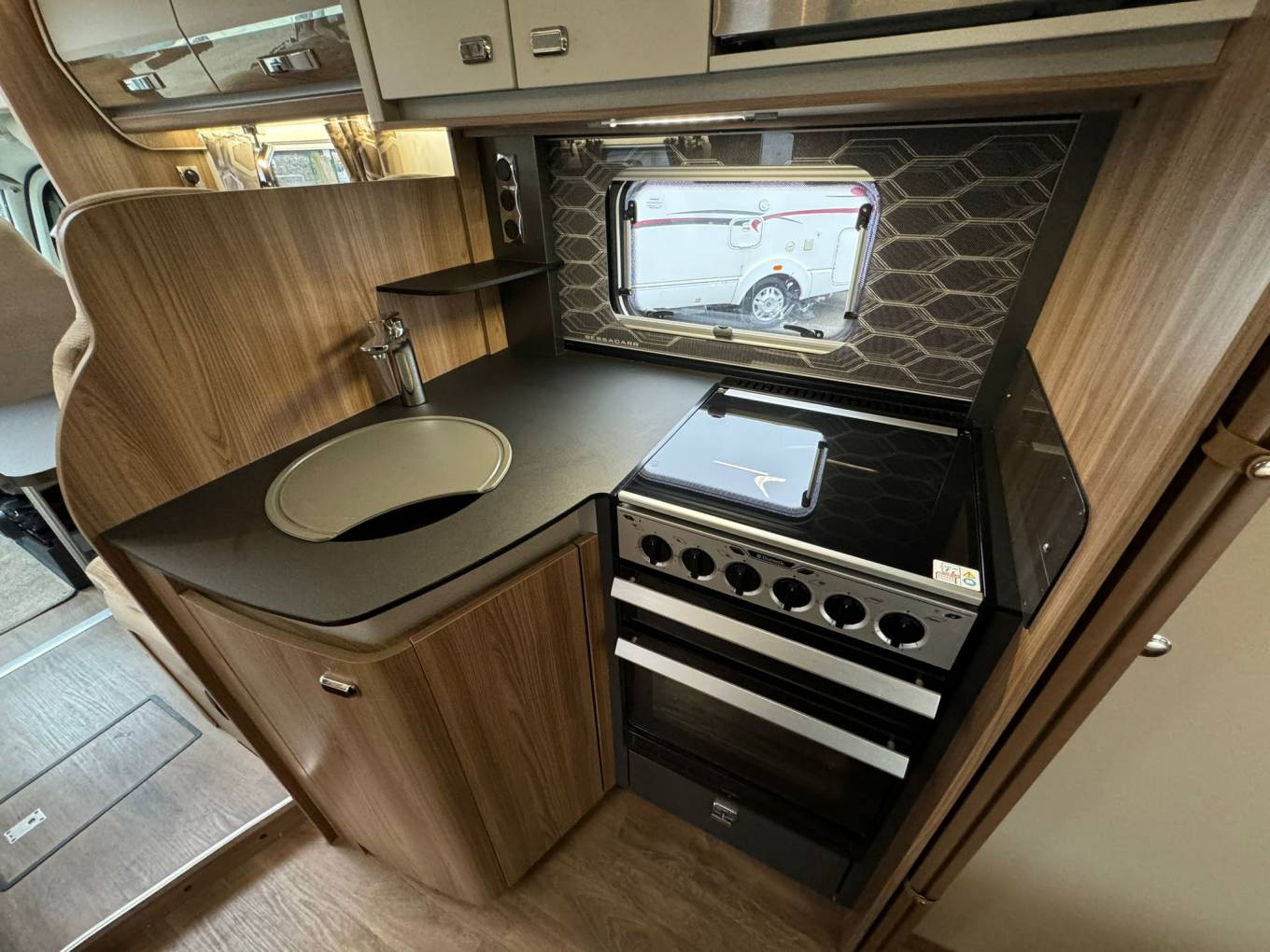 Comfortable Sleeping Arrangements: At the rear, you’ll find a well-designed washroom featuring a separate shower cubicle, cassette toilet, and hand basin. Enjoy a restful night on the fixed French bed, complete with overhead storage and easy access to the under-bed storage—perfect for all your travel essentials!